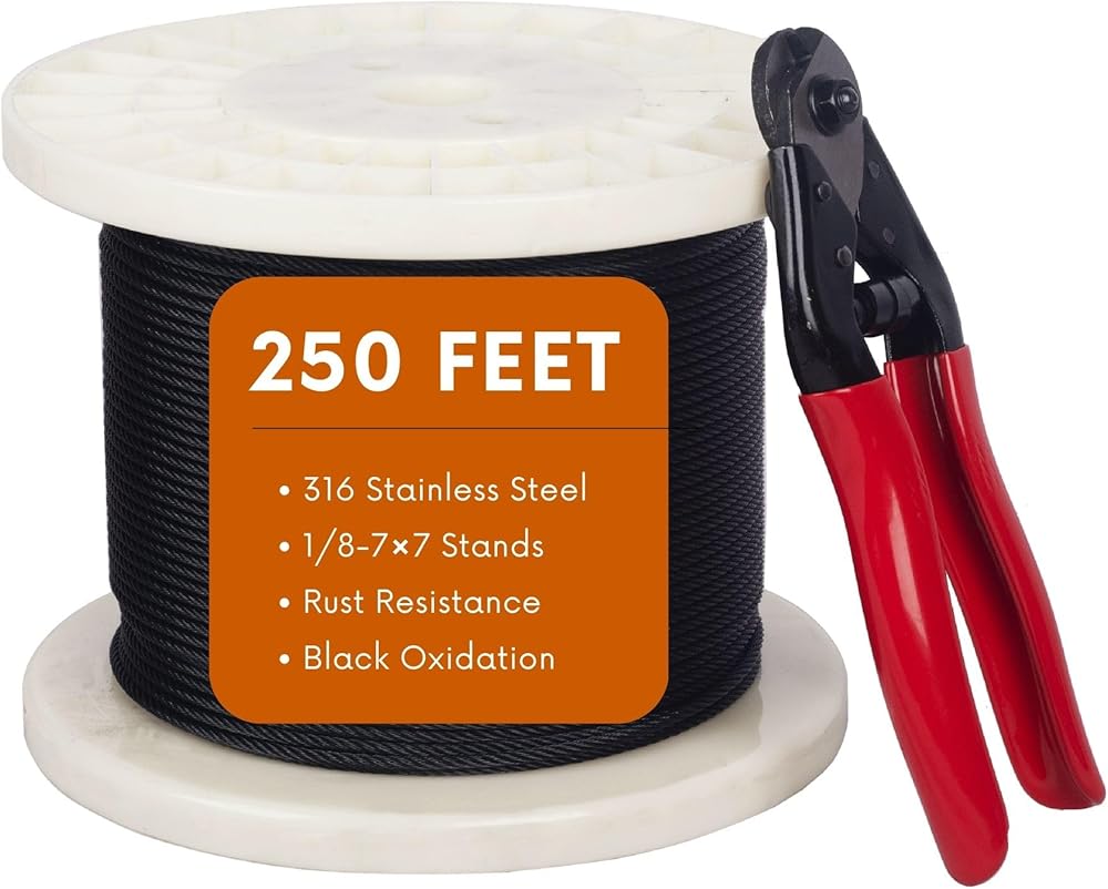 • متانة فائقة: هذا الكابل الأسود المصنوع من الفولاذ المقاوم للصدأ 1/8 مصنوع من الفولاذ المقاوم للصدأ عالي الجودة، مما يضمن متانة ممتازة ومقاومة للتآكل للاستخدام طويل الأمد. إنه مثالي للأنشطة الخارجية والتطبيقات المهمة لأنه أقل عرضة للكسر أو الصدأ.