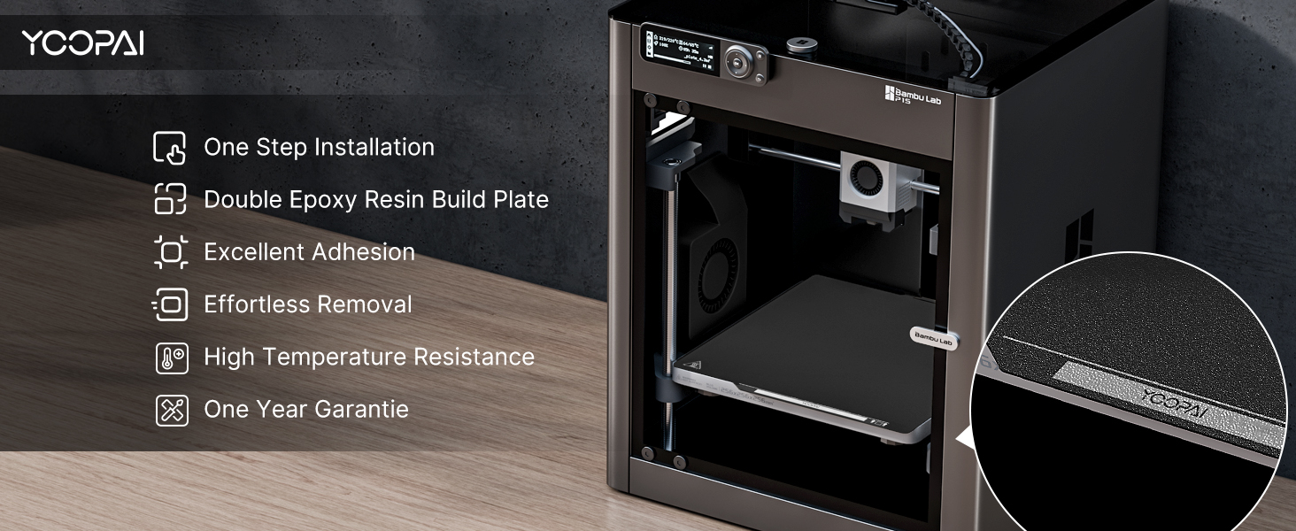 التصاق ممتاز: كل ورقة من ألواح YOOPAI PEI+PEO مجهزة بجانبين من طلاء PEI المزخرف. يمكنك الطباعة بسهولة على كلا الجانبين مباشرة دون الحاجة إلى الغراء أو أدوات إضافية لضمان التصاق النموذج بقوة بالورقة. يوفر كلا الجانبين التصاقًا قويًا بخيوط المواد المقابلة، مما يسمح لك باختيار الجانب المناسب بناءً على متطلبات الطباعة الخاصة بك.