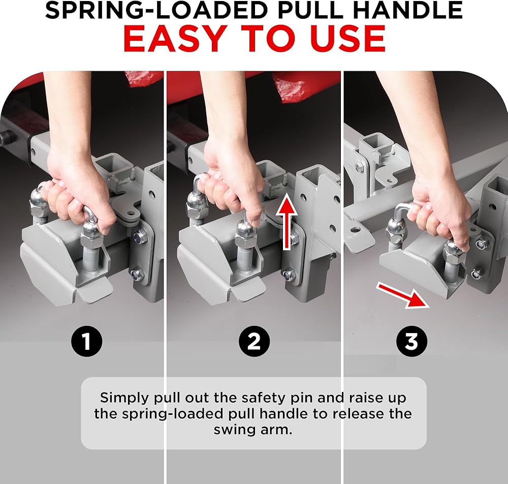 هيكل عالي التحمل: مصنوع من مواد عالية الجودة، يتميز ذراع Swing Away الخاص بنا ببنية قوية لتحمل قسوة الاستخدام اليومي. مع سعة وزن تصل إلى 500 رطل، فإنه يوفر دعمًا متينًا لحامل وصلة الربط أو رف الدراجة، مما يضمن النقل الموثوق به أينما ذهبت.