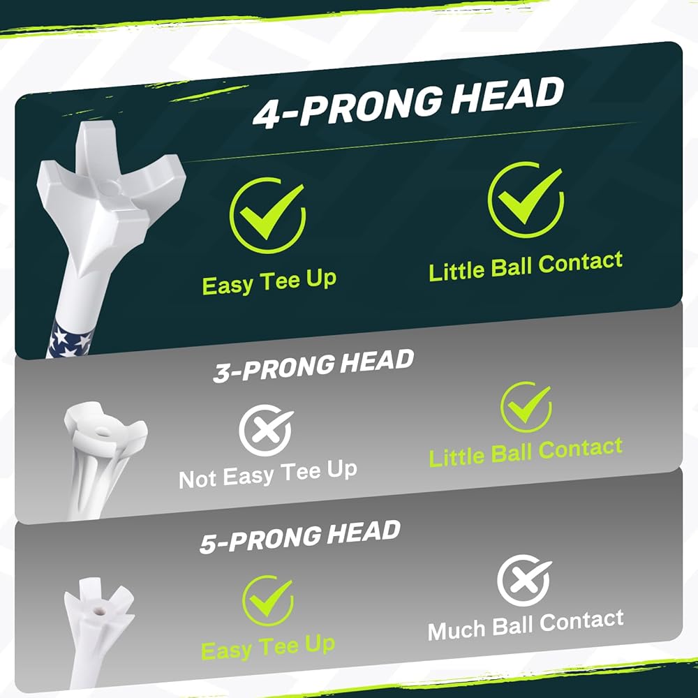 SAPLIZE Golf Tees Feature Upgraded Design with 4-Prong Head and Optimized Shaft Thickness