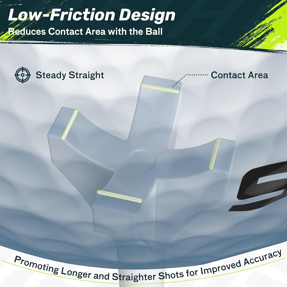• Innovative Head Design Reduces Friction: Minimizes contact between the tee and ball to reduce drag, helping you achieve greater drive distance