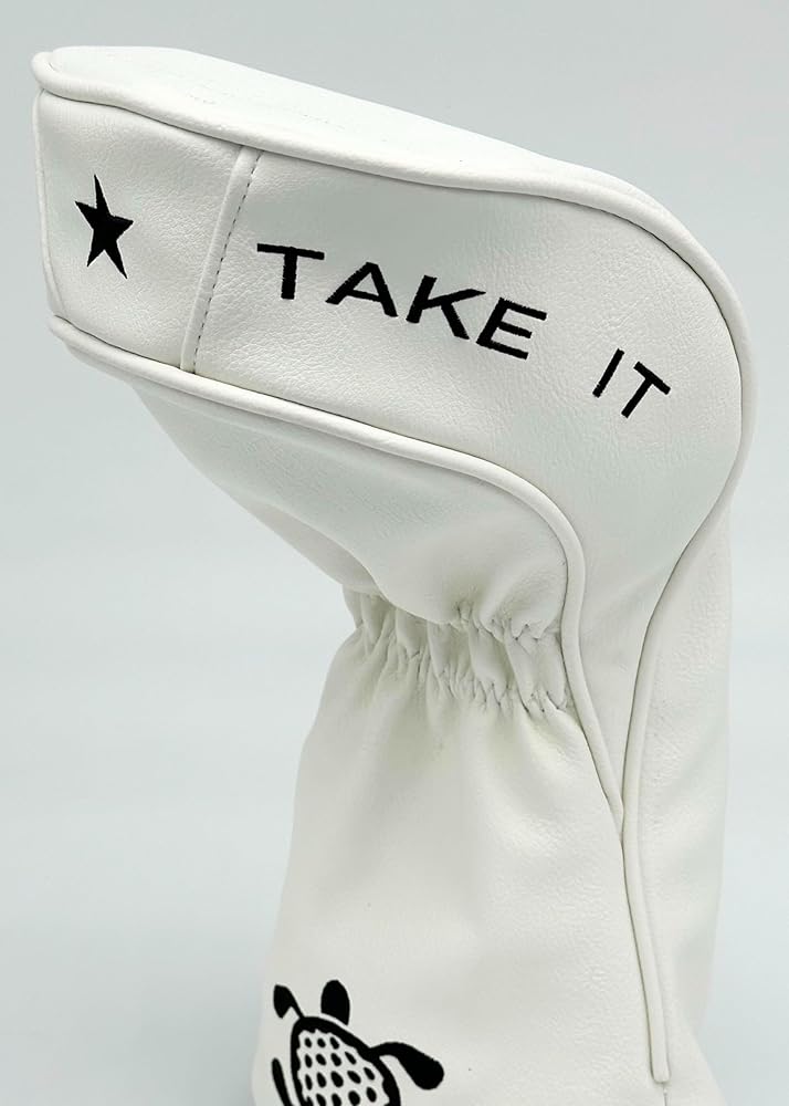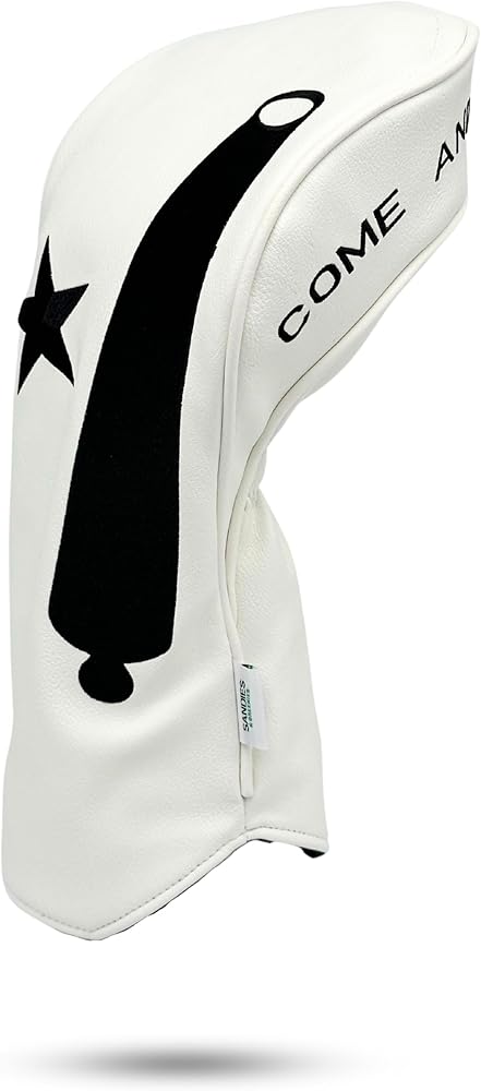 SANDIES & GREENIES Golf Driver Headcover - Come And Take It Whether you're conquering the course in a random pairing or engaging in a heated match with friends, these golf club covers will help you stir up a little competition. Our Come And Take It design features a cannon with a black, singular star embroidered on its surface with a stitched message on the rim showing you mean business. Handcrafted and stitched from premium materials, this driver headcover is designed to protect your golf clubs while gaining you a few style points on the course. This golf driver cover was designed with you in mind featuring a contoured shape that fits the club and allows for easy use and removal. No one likes a cover that is hard to put on and take off. From beginner to pro, true golf enthusiasts will appreciate the quality of our golf head covers. This driver cover will make a perfect gift for any golf player looking for some stylish, yet functional, golf club covers.