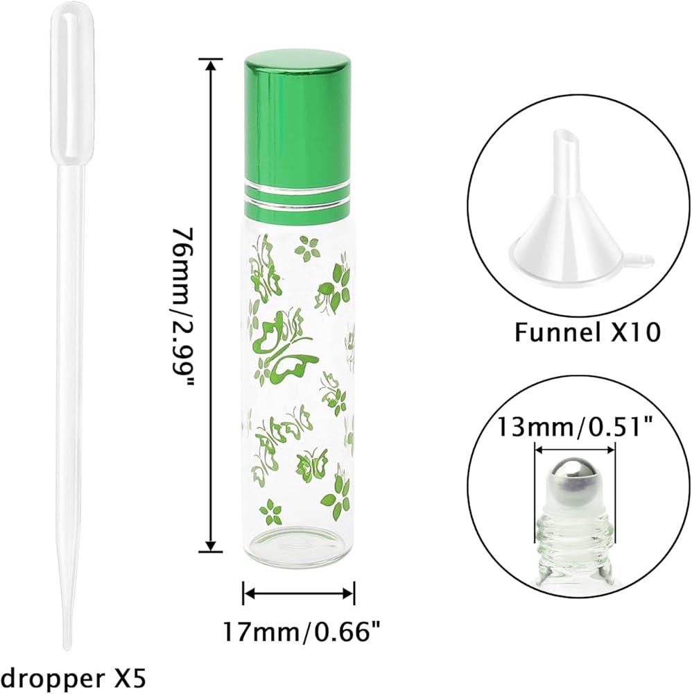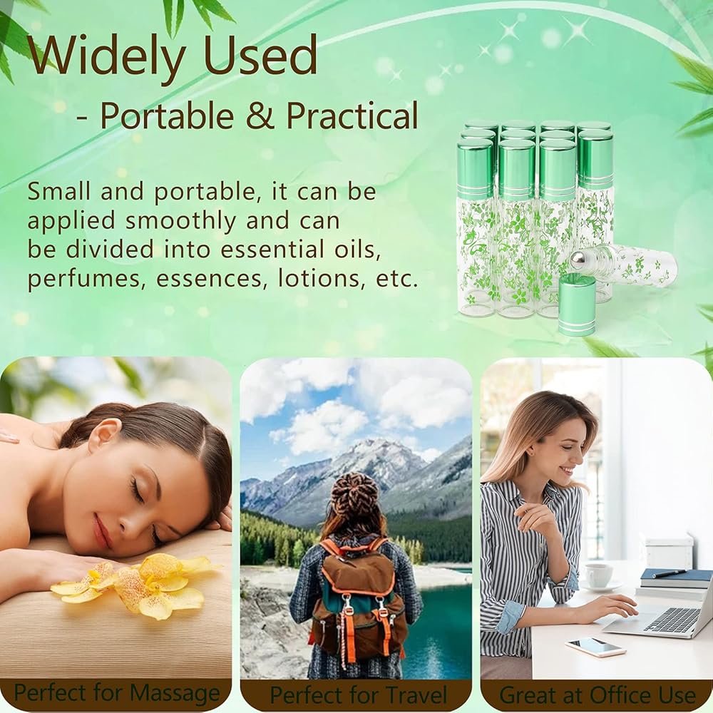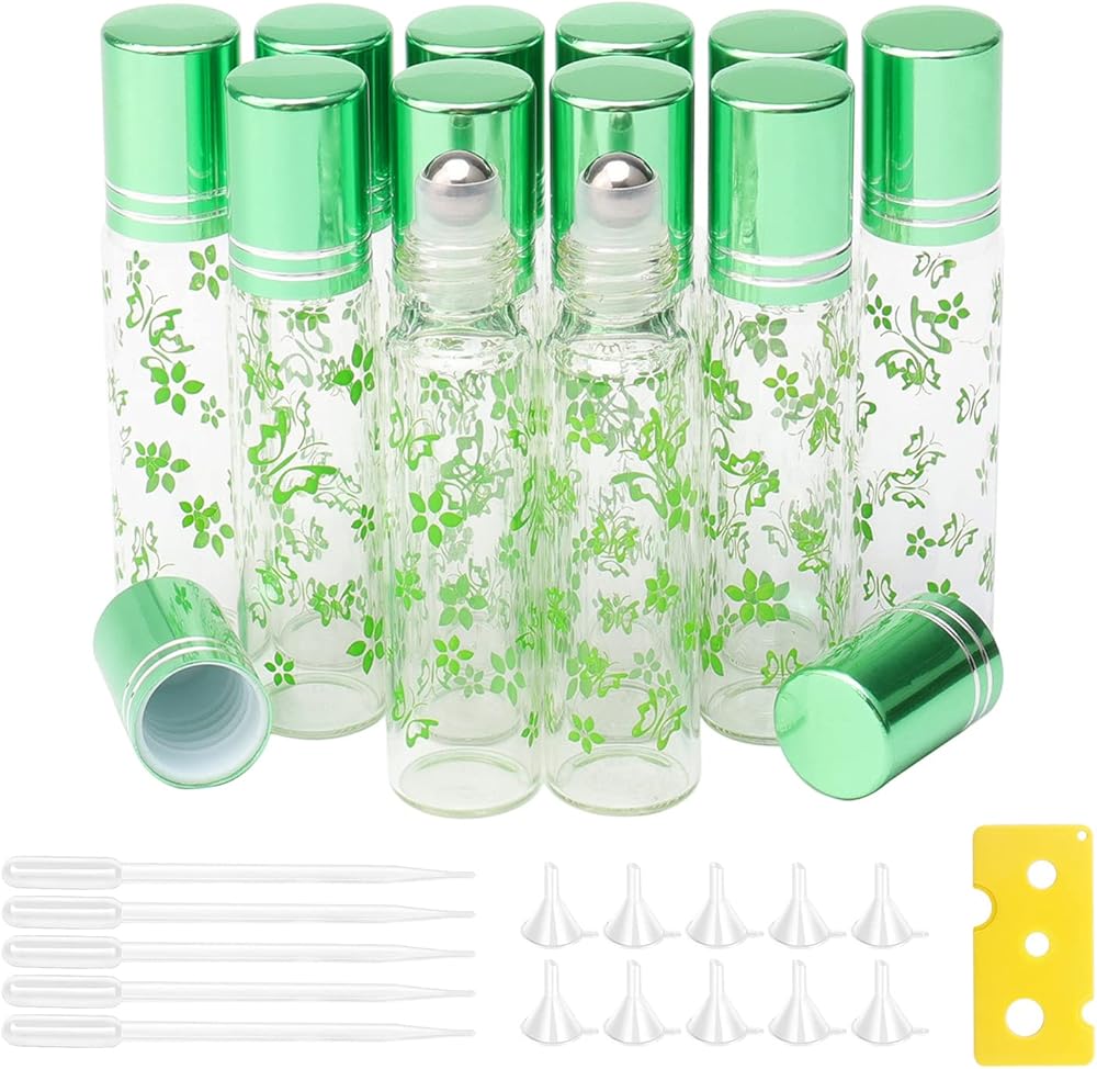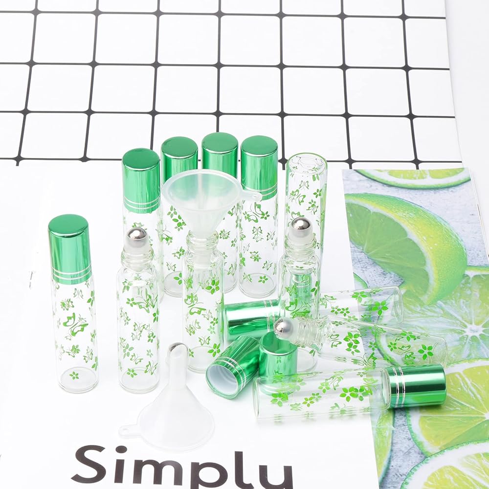 قوارير عينات من الزجاج الأخضر: تأتي كل عبوة مع 12 لفة زجاجية خضراء على الزجاجات، وقمع، وفتاحة قطارة - مثالية لإنشاء خلطات الزيوت العطرية وعينات العطور الخاصة بك.