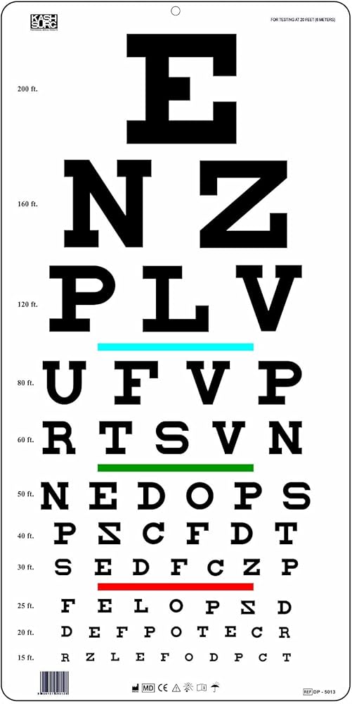 Snellen Letter Eye Chart with Red Green Blue Bar Visual Acuity Test 6m / 20ft.