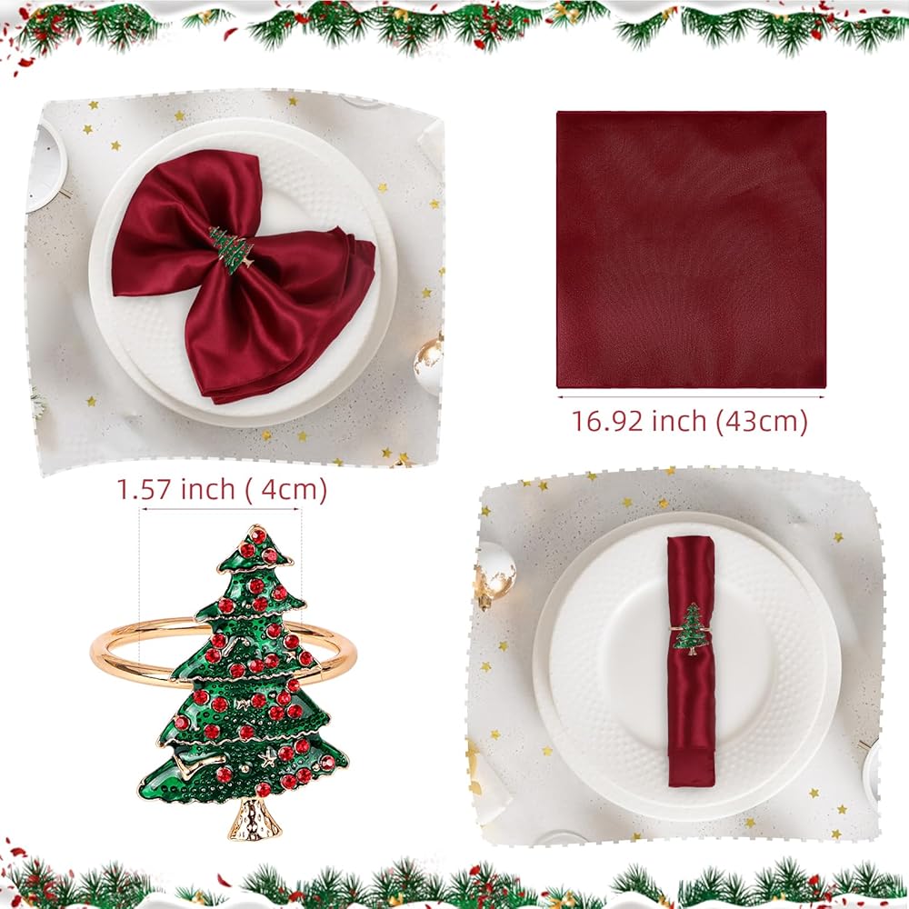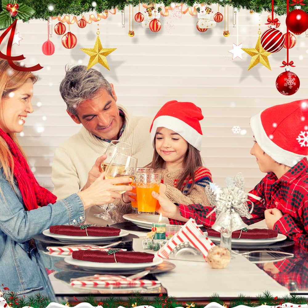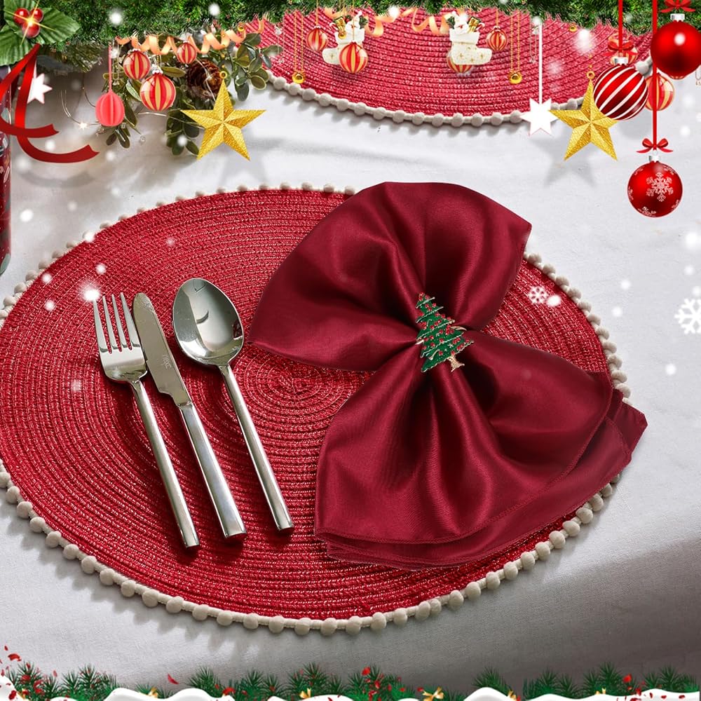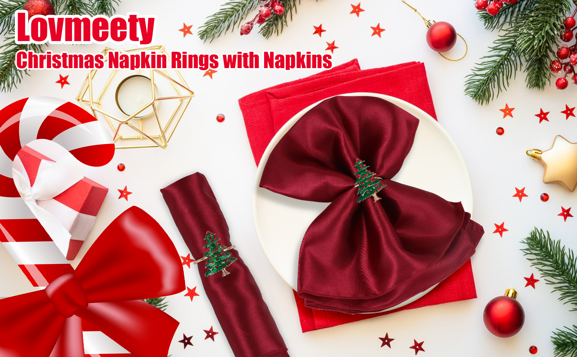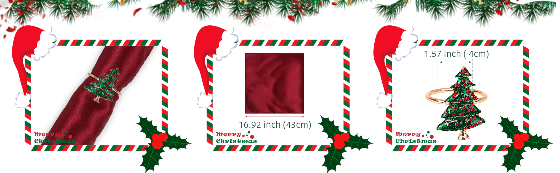 تصميم فريد: تتميز حلقات المناديل بشكل شجرة عيد الميلاد مزين بلمسات حمراء، مما يلتقط العناصر التقليدية لعيد الميلاد بشكل مثالي. مع المناديل الحمراء الكلاسيكية، فإنها تضفي على الفور لمسة احتفالية على طاولتك