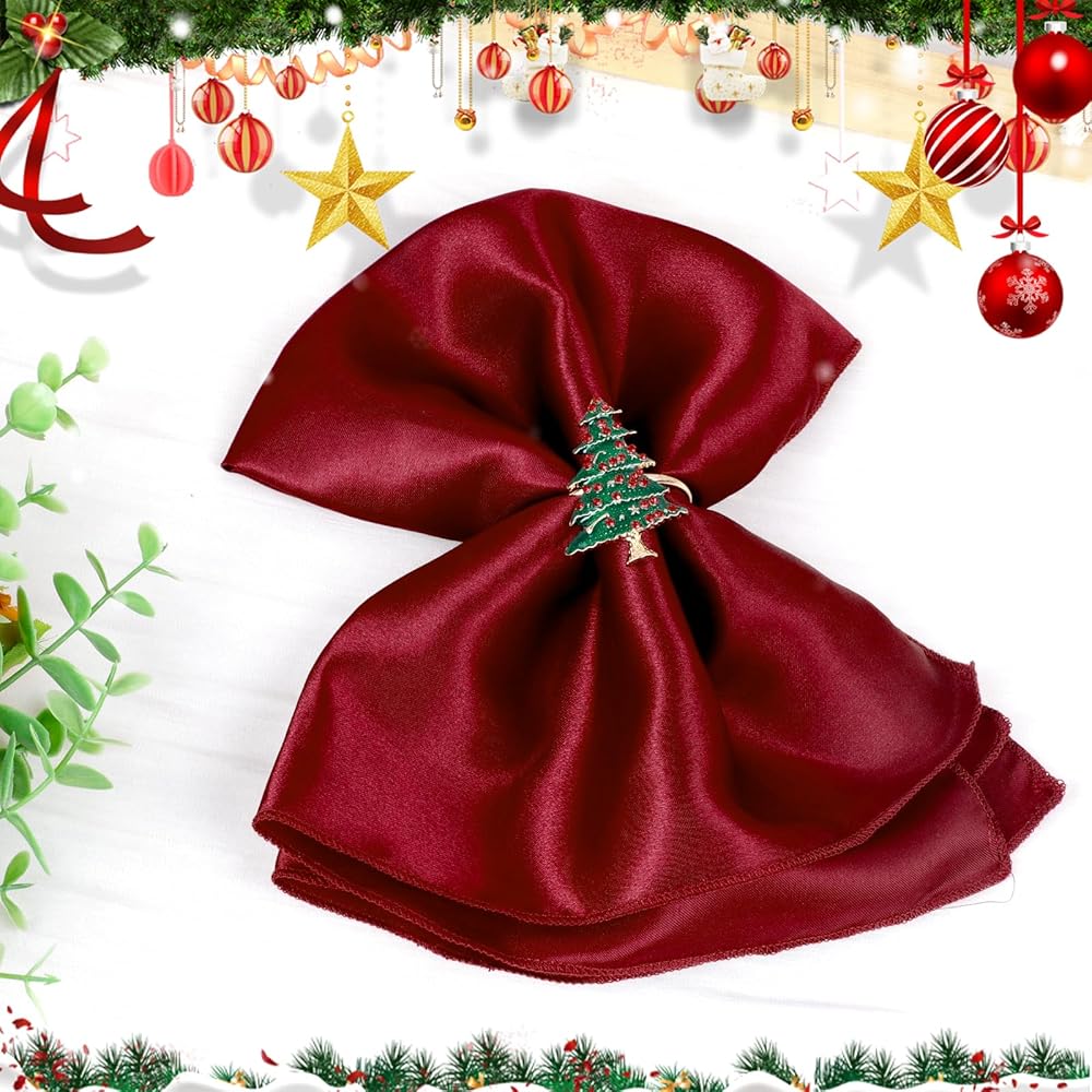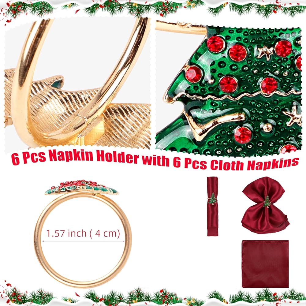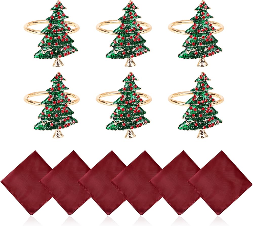 مجموعة من 12 قطعة من حلقات مناديل عيد الميلاد والمناديل، 6 قطع من حلقات مناديل شجرة عيد الميلاد 6 قطع من مناديل قماشية حلقات مناديل عيد الميلاد منديل منديل من أجل ديكور طاولة العشاء وحفلات العطلات