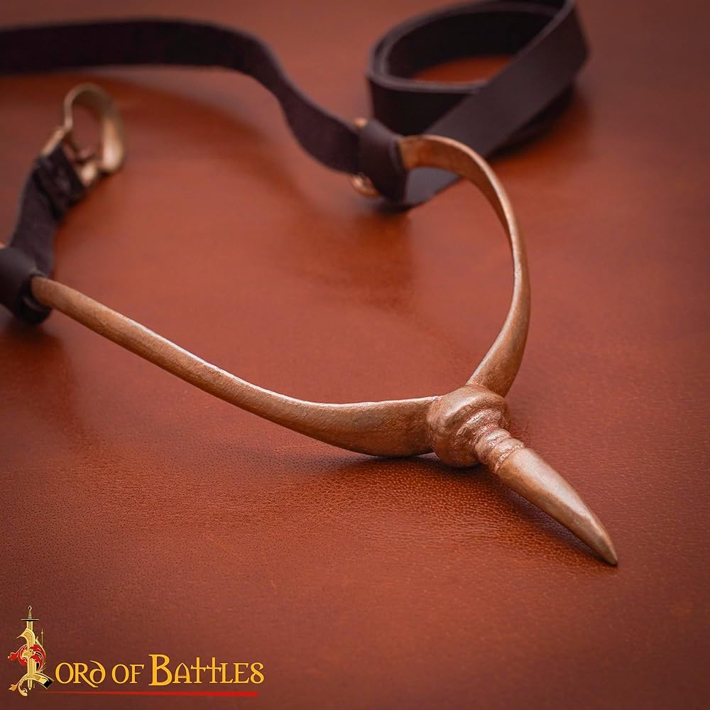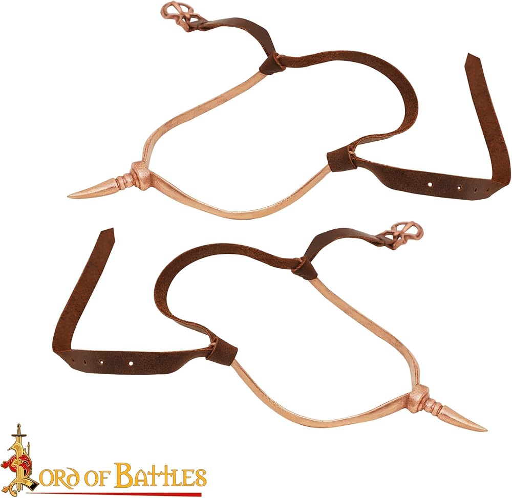 This Medieval Norman Spur is crafted using the ancient technique of lost-wax bronze casting. Our in-house team has meticulously crafted a fusion of pure copper and tin alloy to historical proportions. It features a tying structure made of genuine leather, which allows you to fasten it securely to your shoes. Size: (12.8×7) cm & Weight: 46 grams. At Lord of Battles, we are genuinely committed to offering nothing but the best to our clients. Every item is unique and is purely handcrafted. The highest possible standards are maintained by using the best quality materials. Innovation and creativity are the hallmarks of our company yet we stay true to history. Every article is obtained keeping ethics in mind and conserving the environment. We assure you of total satisfaction. Let us know if you have a complaint with your purchase, we will do whatever it takes to make it right, our business is your happiness. Be happy Buy happy. ...