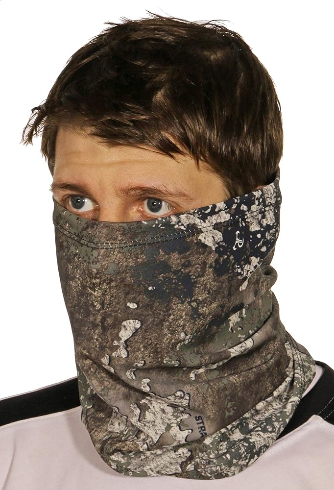 Strata Sun Shield Sun protection Face Mask with UPF50+ features a mesh front panel to breath through much more easily. It creates a virtual shade balanced with breathability. for a high level of sun protection and comfort. This fabric is knit with very fine yarn, knit at a fine level to help filter out the sun. Also suitable for Spring or Fall in cool weather for concealment. Use the mesh to breath through or rotate it backwords. Very stretchy and forgiving.