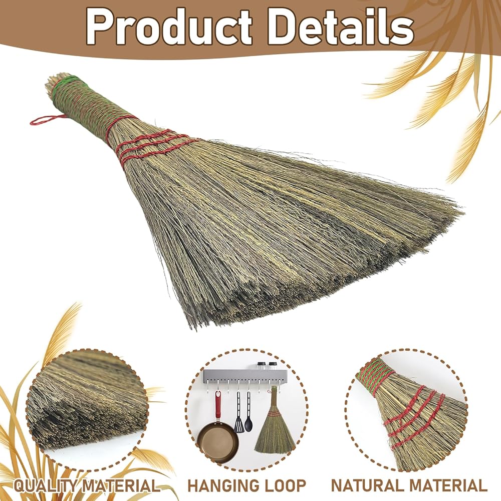 Quantity and Hanger Design: this package includes 4 pieces of corn whisk brooms, and each comes with hanger design, making it convenient to store and can be easily hung on wall brackets or hooks when not in use; More brooms in your arsenal means less worry about immediate replacements