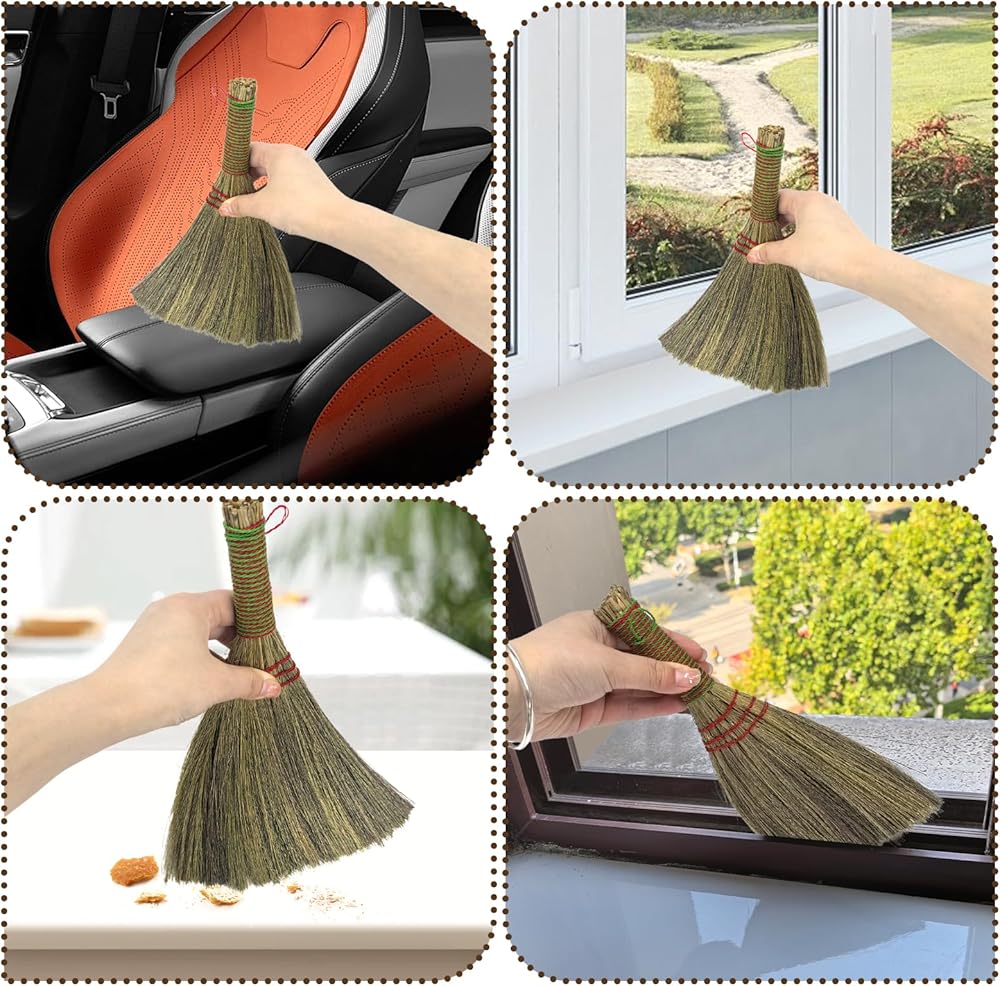 • Mini Hand Broom: You will get 6 pcs of 100% Miscanthus handcrafted brooms with hanging ropes. It can provide excellent cleaning performance; the compact design can help you clean the dust and debris in the narrow gaps well, ensuring the house's cleanliness.