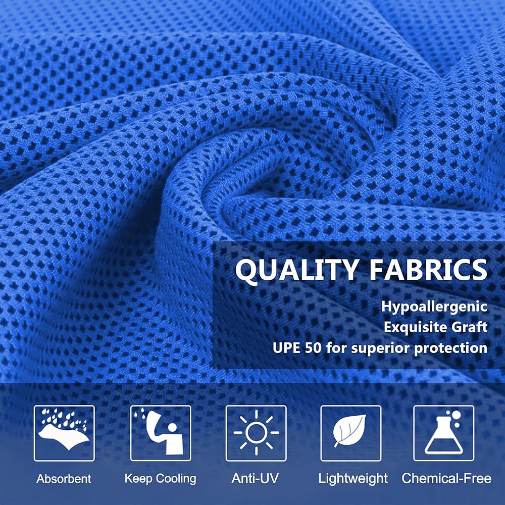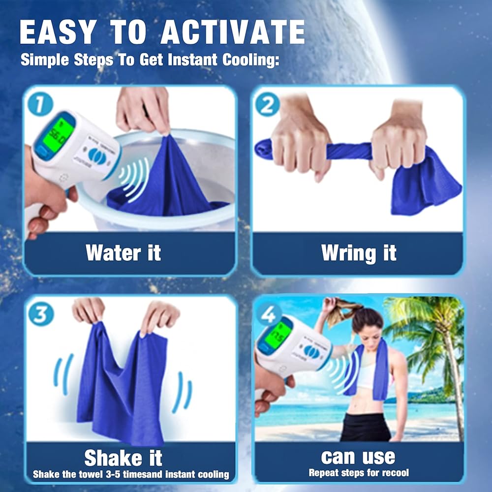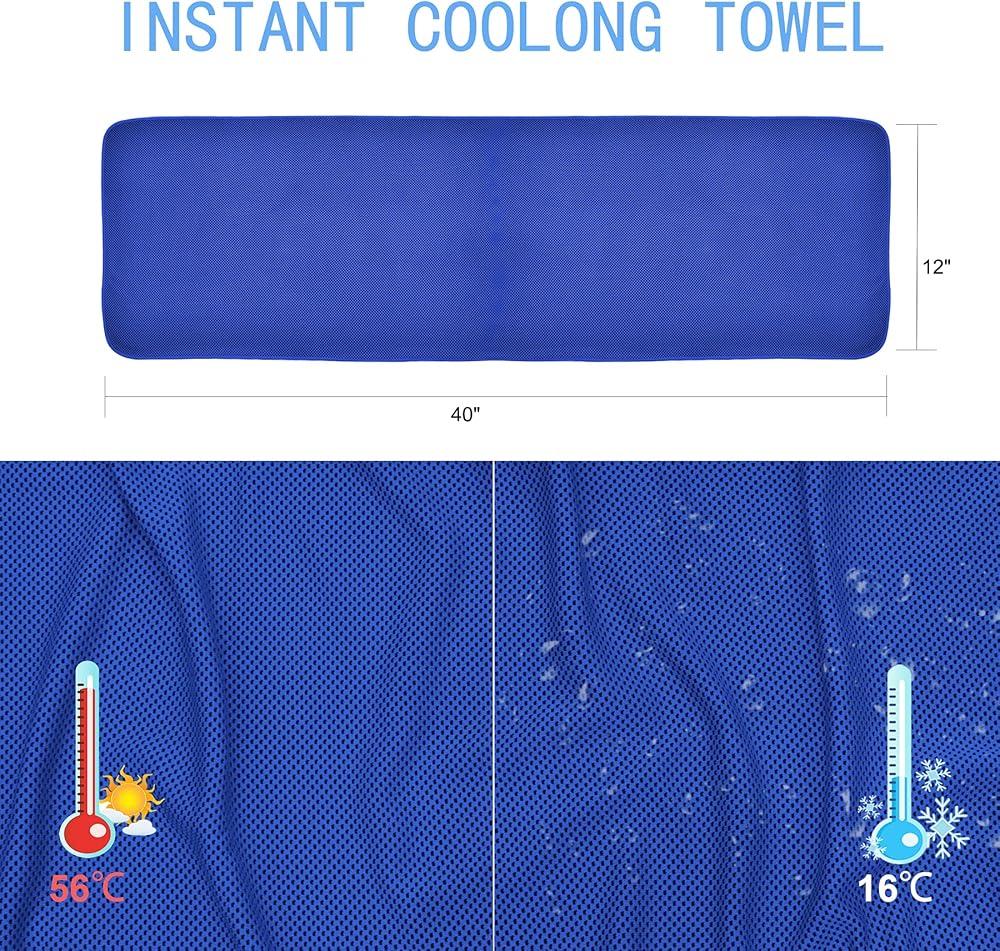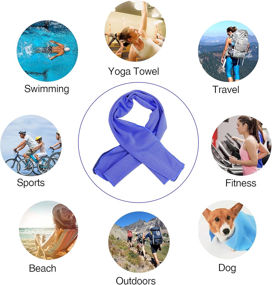 تبريد فوري وقابل لإعادة الاستخدام ---- منشفة التبريد هذه مصنوعة من مادة الألياف الدقيقة شديدة التبخر وقابلة للتنفس مما يجعلك من السهل البقاء باردًا ومرتاحًا مع مناشف التبريد بينما تقوم ببساطة بنقعها وعصرها وإغلاقها. إضافة الماء البارد بشكل متكرر لتحقيق التبريد المستمر.