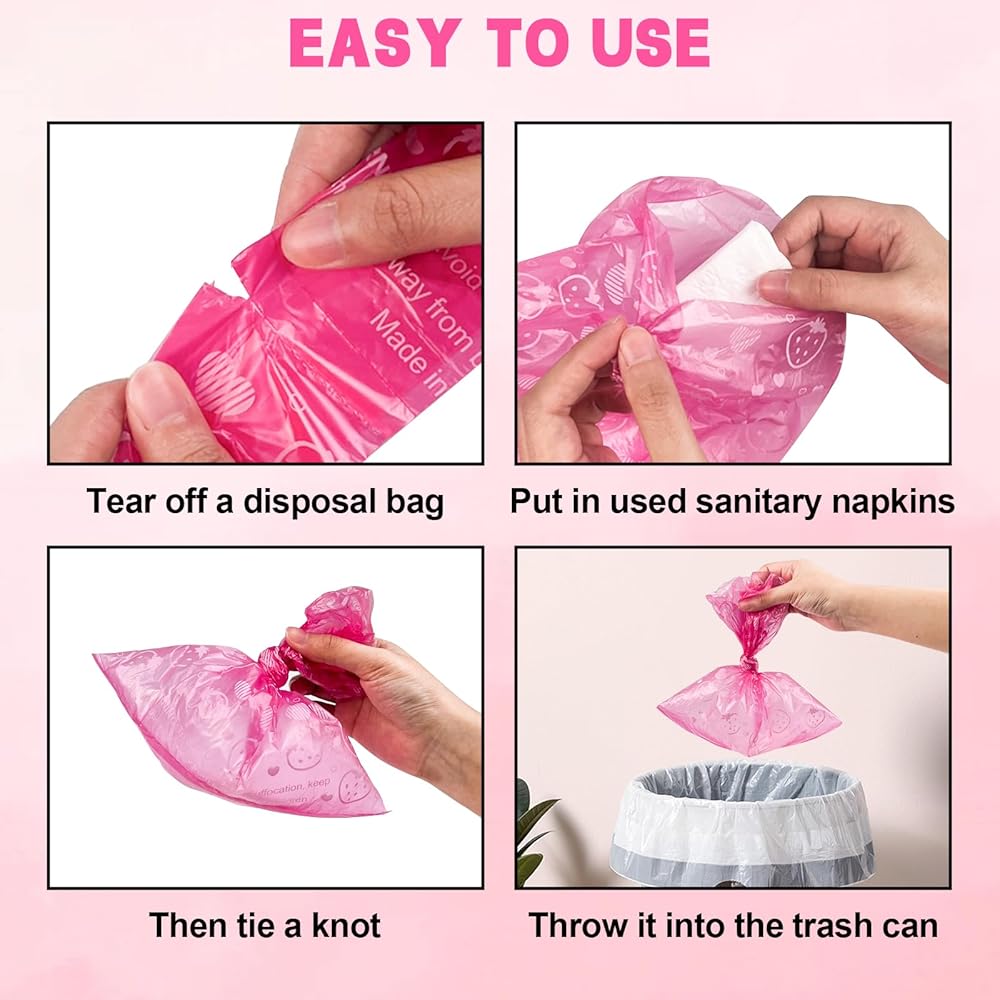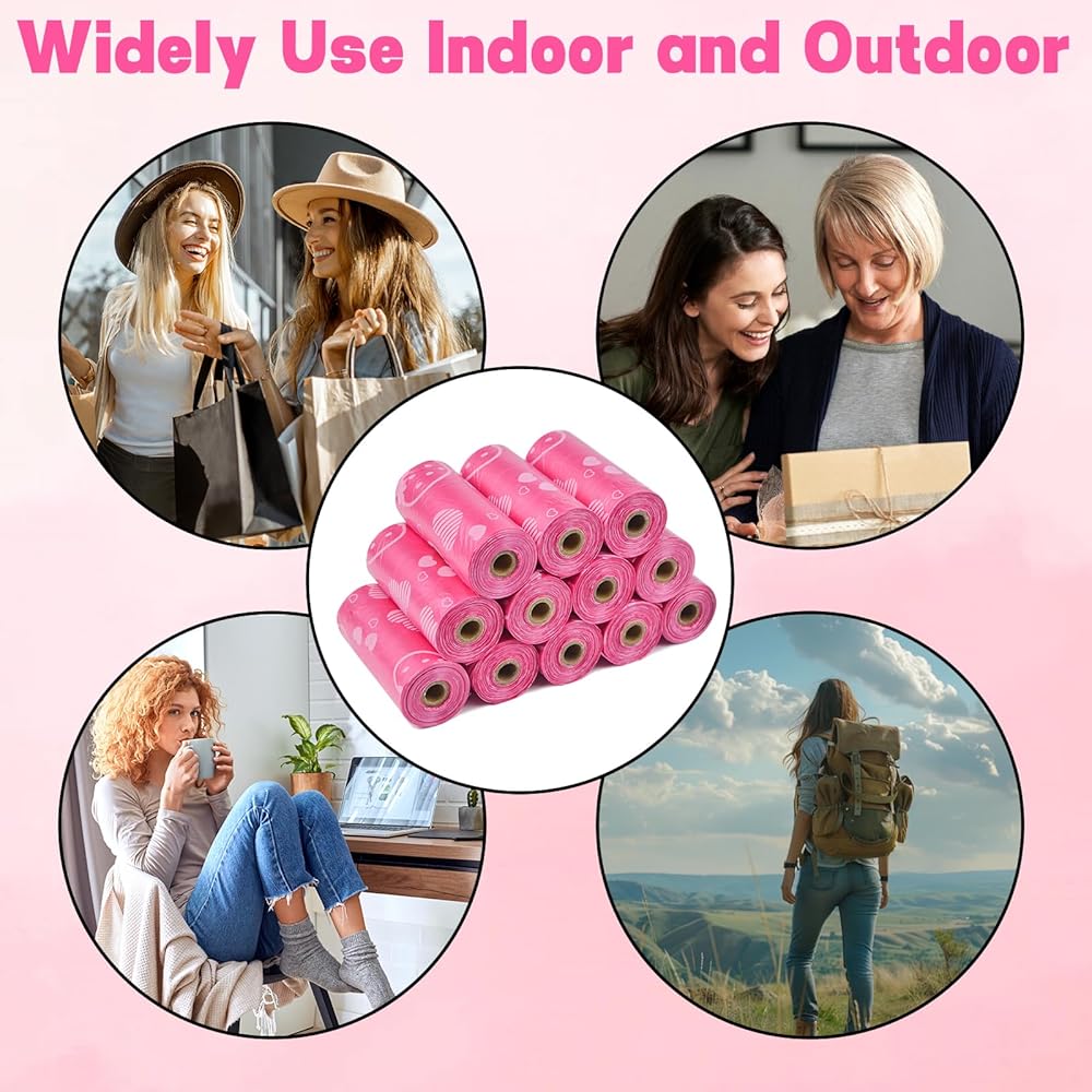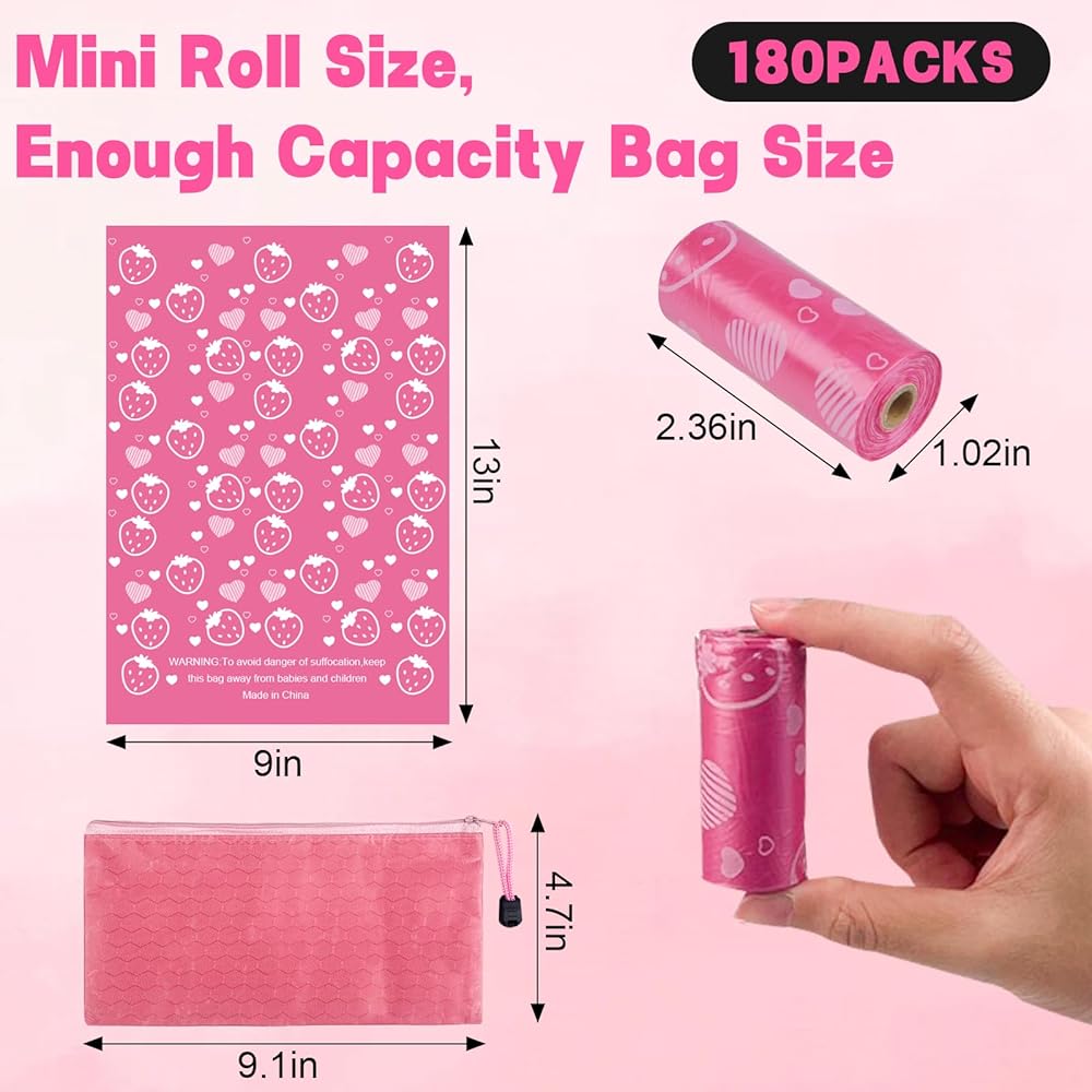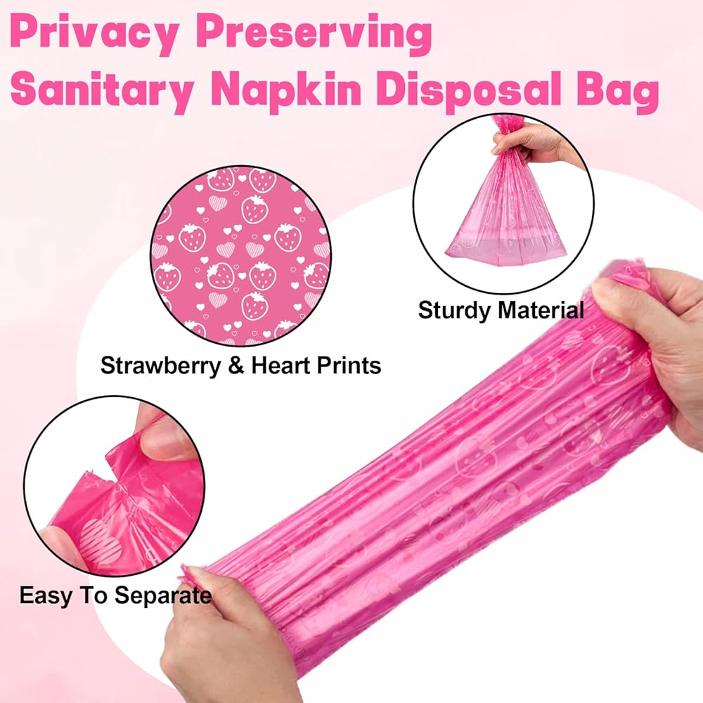 180 قطعة من أكياس التخلص من المناديل الصحية، أكياس التخلص من السدادات الوردية للاستعمال مرة واحدة مع حقيبة تخزين، أكياس قمامة الحفاضات الصحية، حقيبة صغيرة للاستعمال مرة واحدة للسدادات القطنية، بطانات صحية للنساء، التعامل مع الخصوصية