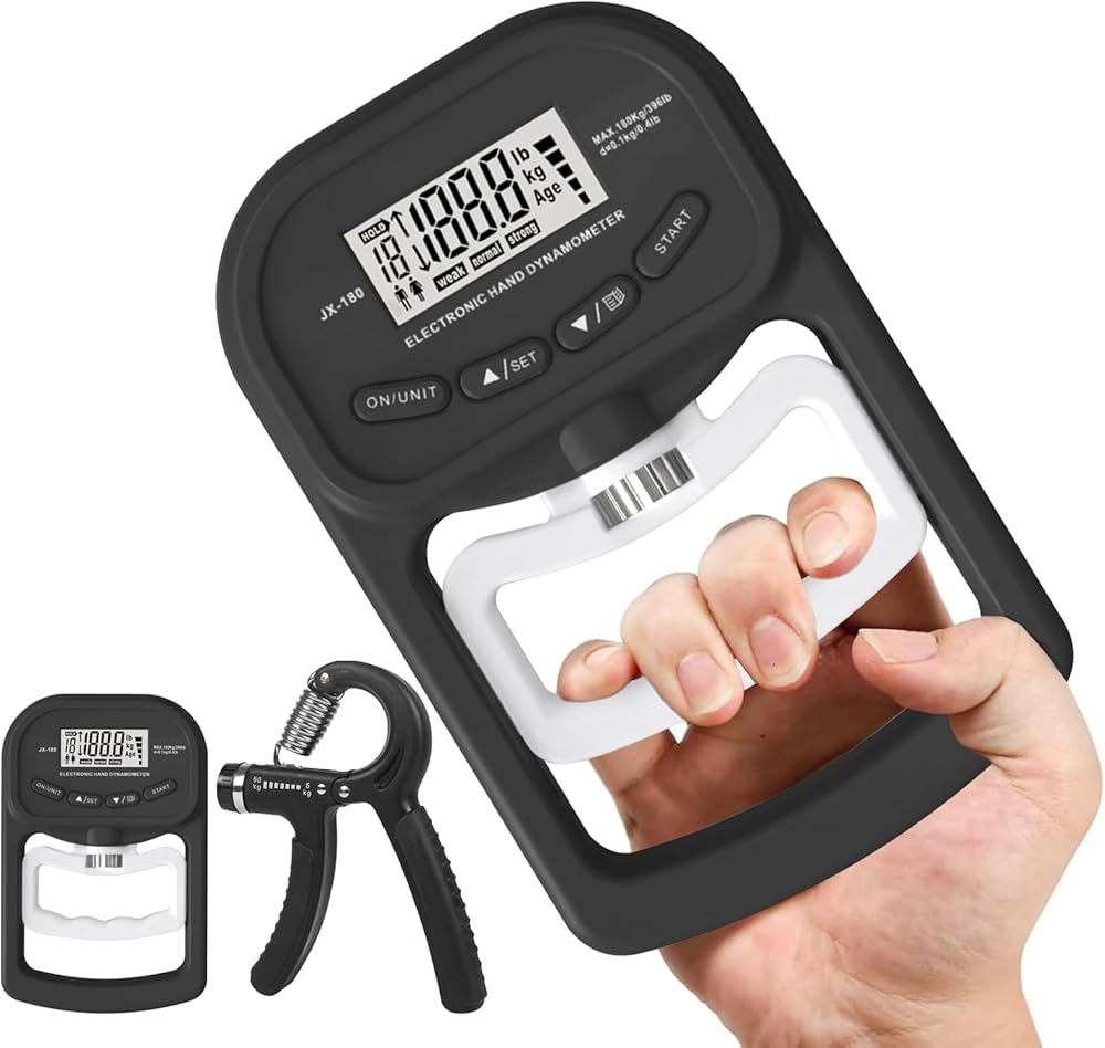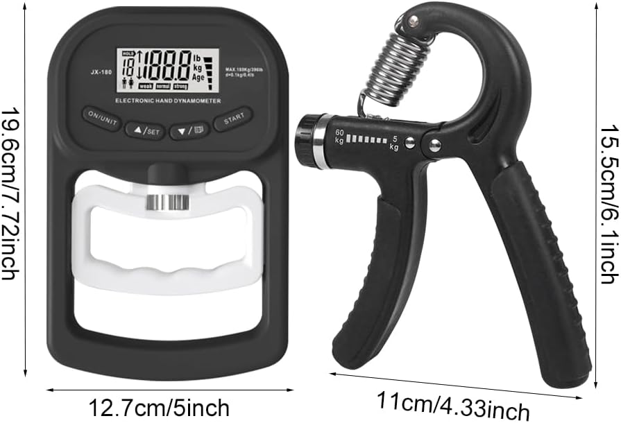 【MEASURE RANGE】Features a high-precision strain gauge sensor that gives you an accurate, instant digital reading of your grip strength. Measurement range: 0 to 396 lbs (180 kg) grip strength.