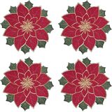 مجموعة أويني عيد الميلاد مجموعة من 4 ، مطرزة من الذهب اللامع اللامع النسيج البونسيتيا زهرة الطاولة الحصير 15 بوصة المخروطات ، مهرات عيد الميلاد لزخارف طاولة العطلات ، الذهب