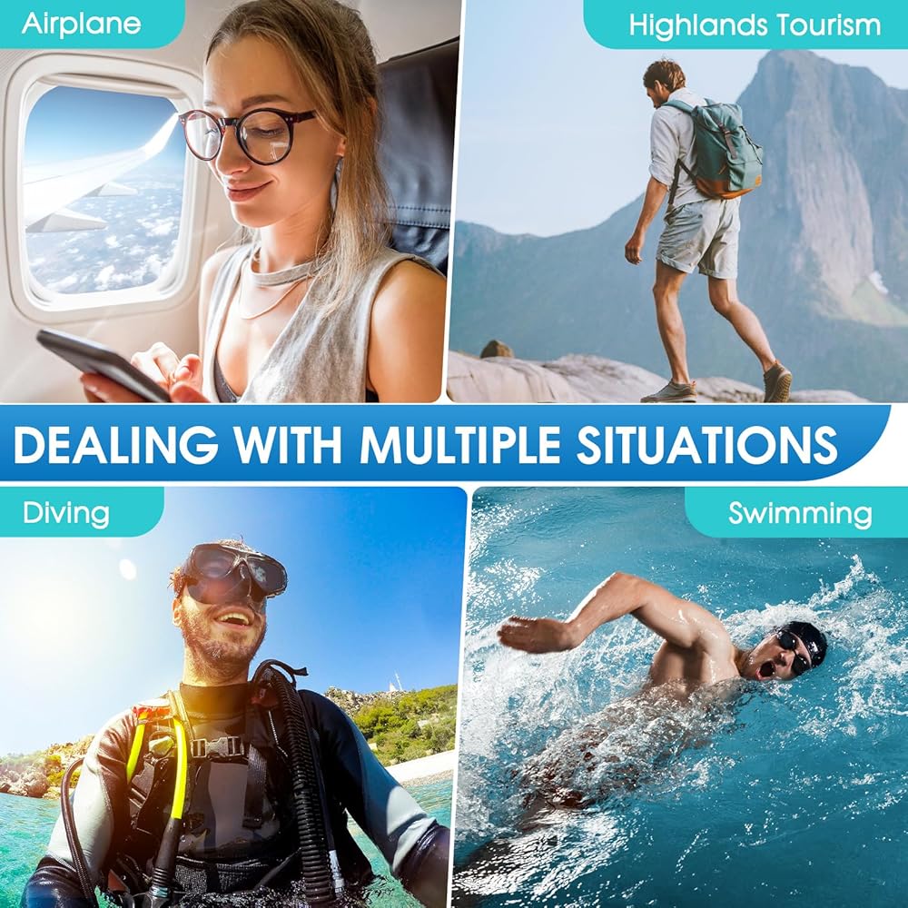 تشغيل بسيط وتصميم محمول: يعتبر جهاز فك انسداد الأذن المدمج هذا مثاليًا للسفر، حيث يوفر طريقة بسيطة لتخفيف إزعاج الأذن من خلال مزيج من استخدام الأدوات وحركات البلع.