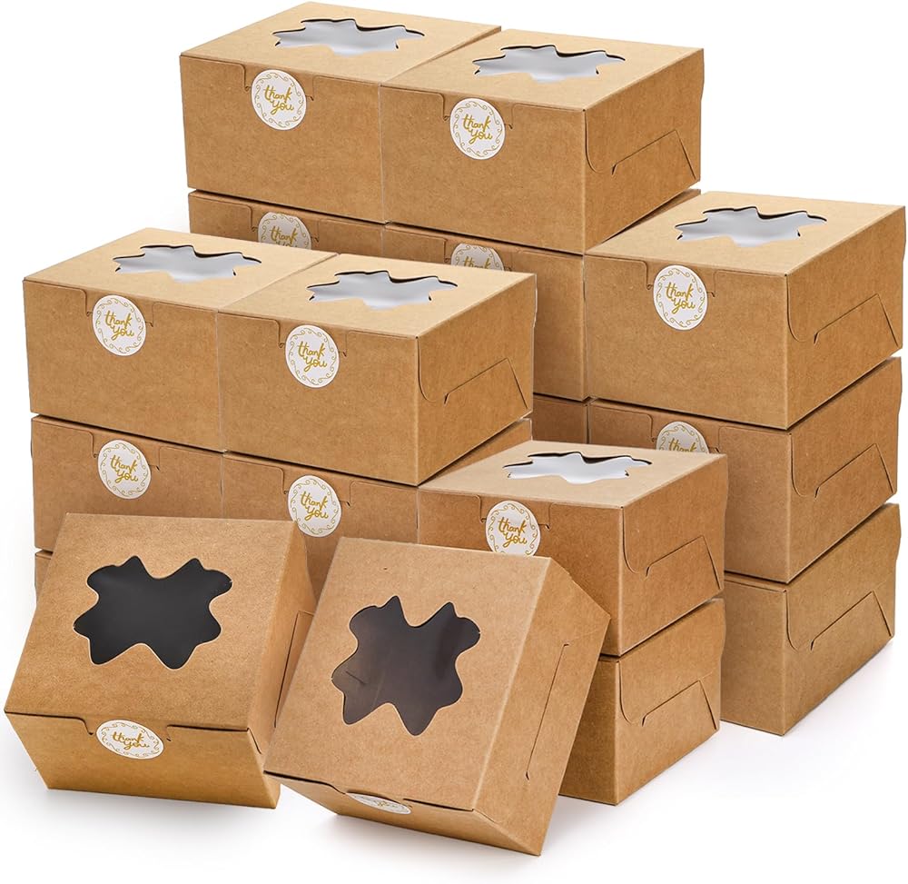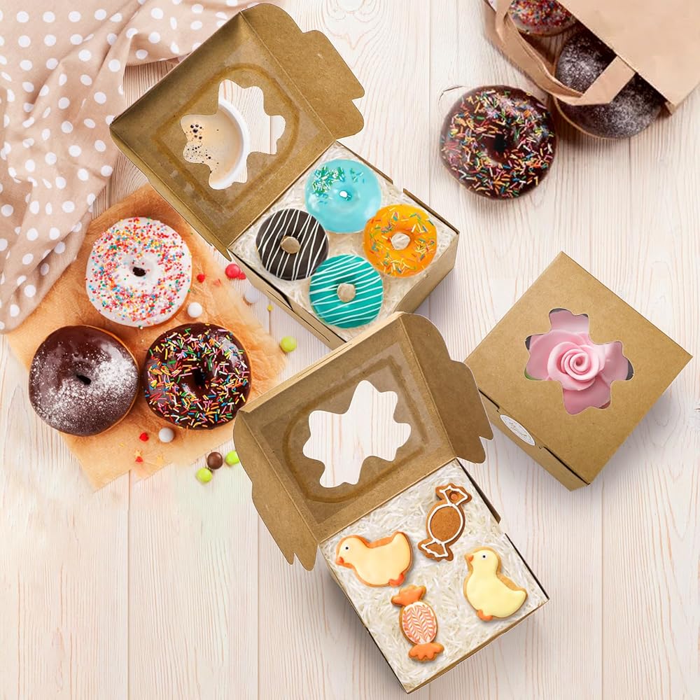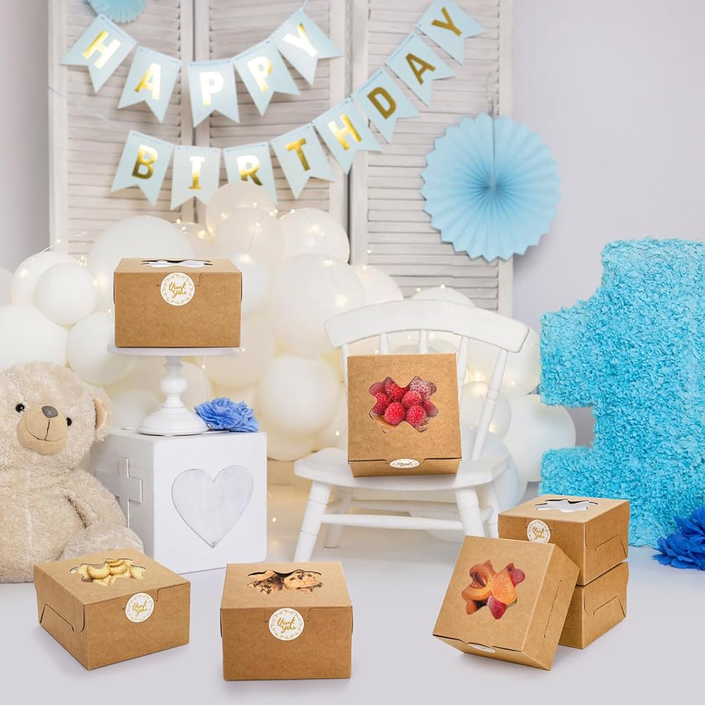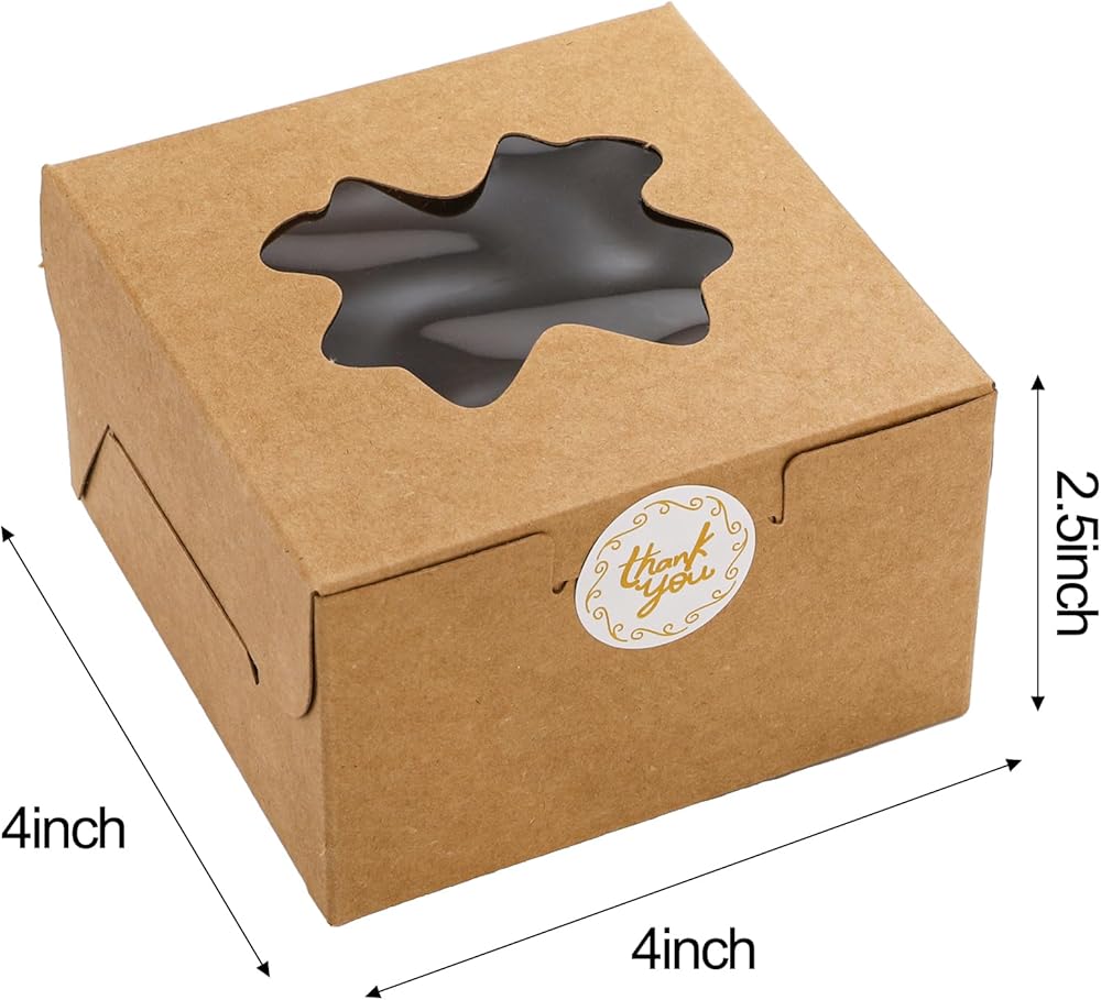 150 قطعة من صناديق ملفات تعريف الارتباط الصغيرة من ZEAYEA، صناديق مخبز مقاس 4 × 4 × 2.5 بوصة مع نافذة، صناديق صغيرة للهدايا، حاويات صغيرة للهدايا، صناديق حلوى صغيرة للكب كيك والشوكولاتة والفراولة والمعجنات