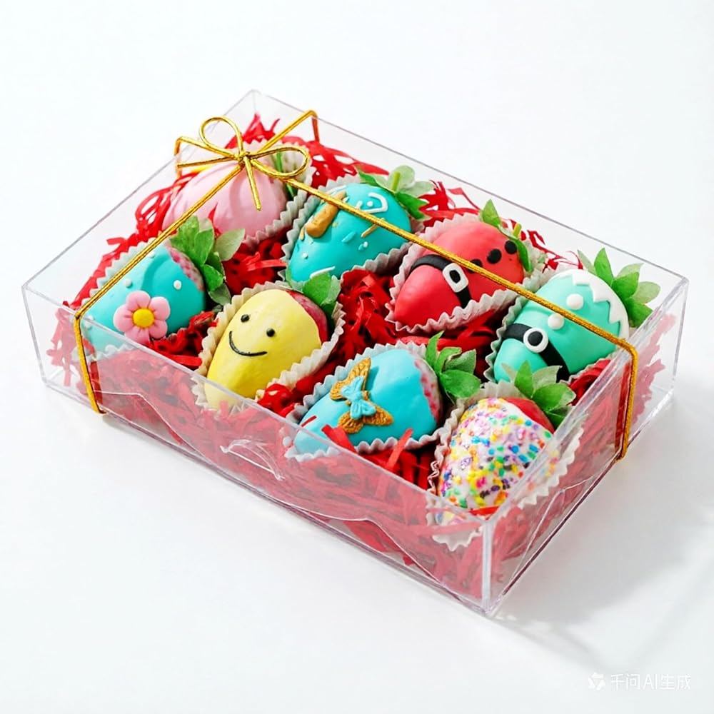 20 قطعة 8 × 5 × 2 بوصة صناديق الفراولة المغطاة بالشوكولاتة الشفافة مع نافذة، صناديق المخابز، صناديق الكوكيز، صناديق الكيك، صناديق الحلوى، صناديق الدونات