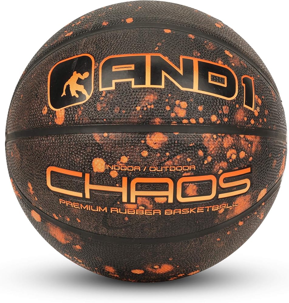 AND1 CHAOS RUBBER BASKETBALL AND1 is designed for the game of basketball. Enjoy the AND1 Chaos Rubber Basketball season after season. The game ready official NBA size ball (29. 5”) comes inflated and can be used right out of the box. Whether you're playing a pickup game at the park, going 1v1 at the gym, or practicing your free throw shots in your driveway, this basketball is made for playing with indoors and outdoors. The AND1 Chaos basketball is made from high quality rubber material and is designed to withstand wear and tear. This basketball is a great choice for casual basketball players or competitive athletes of all levels. It is a slam dunk gift for kids, teens, and adults alike. It's time to take your game to the next level with AND1's Chaos Rubber Basketball, available in color graffiti and spaced theme prints. BRAND STORY: The road to success is riddled with the ones who gave up when the going got tough. We can see them in our rearview mirror as we make our way to take back what's rightfully ours: a stake in the game of basketball. No matter how long it takes, we will chip away, until hard work, determination, conviction, or gravity paves the way for our majestic comeback. Because giving up is not an option for AND1. BORN FROM THE STREETS
