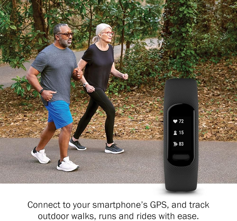 تتضمن الحزمة: جهاز تتبع اللياقة البدنية Garmin vivosmart 5 (أسود، صغير/متوسط)، وحامل ساعة Signature Series