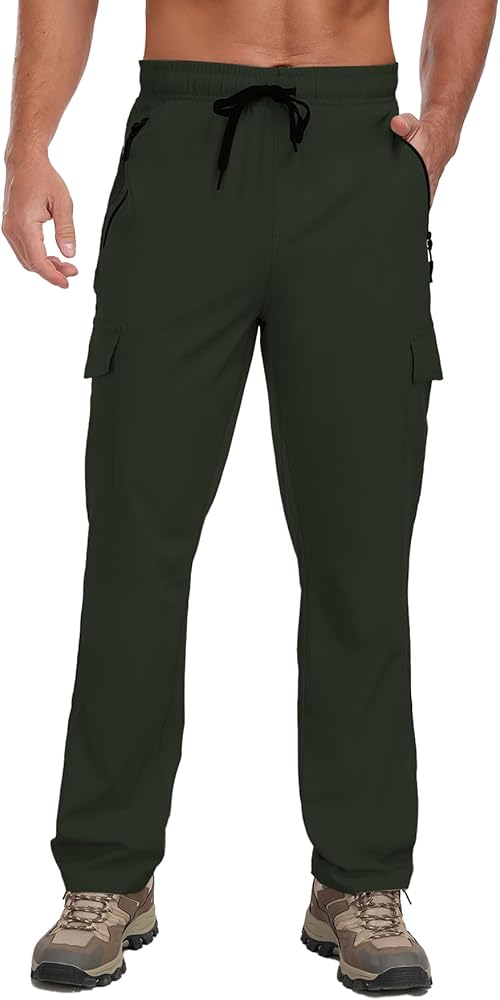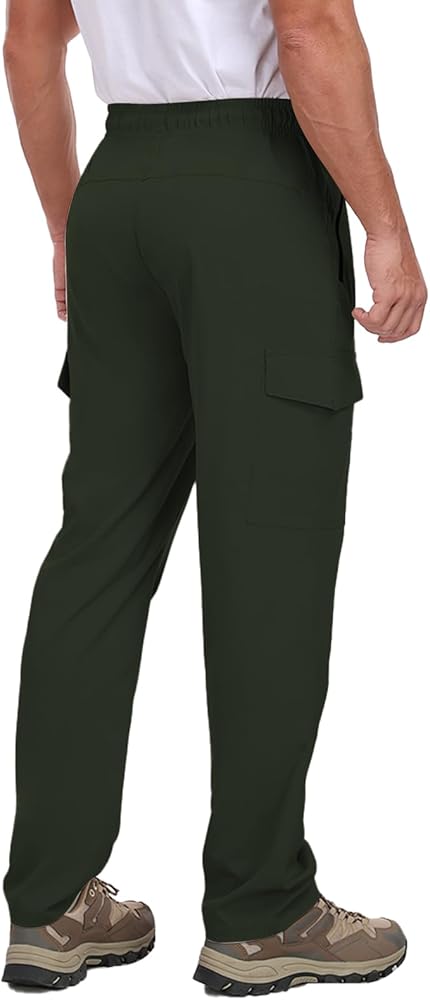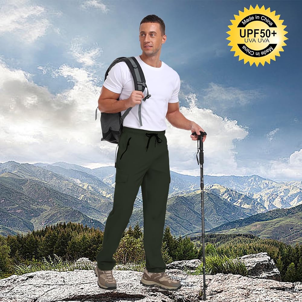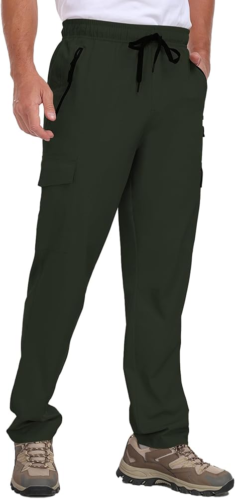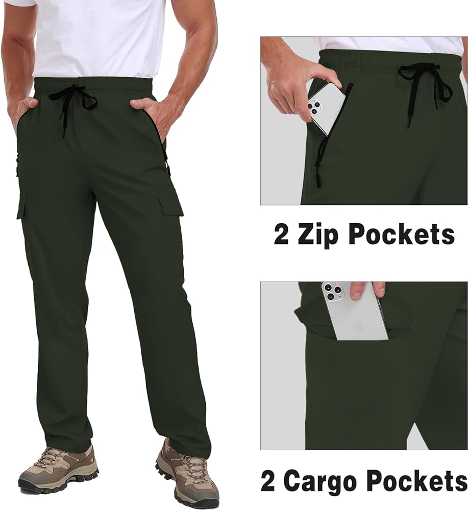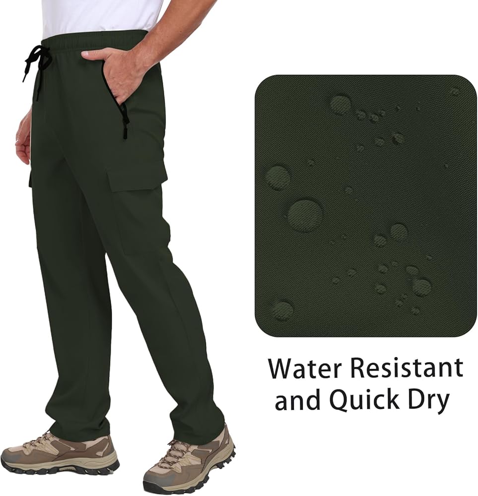 Mens Cargo Pants Lightweight UPF 50+ Hiking Pants Waterproof Elastic Waist Joggers with Pocket Quick Dry Workout Water Resistant Zip Pockets UV Sun Protection for Work Running Mens Straight Leg Lounge Sweatpants Workout Outdoor Casual Wear Multi Pocket Work Running Sports Golf