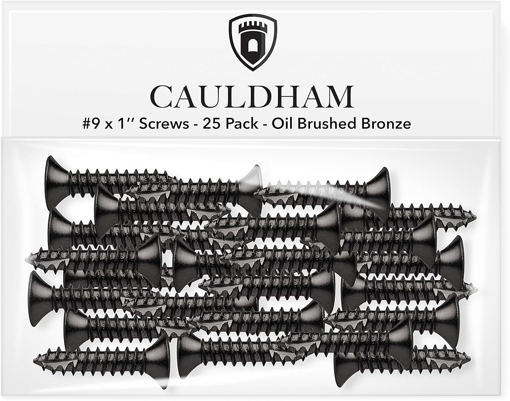 Whether your project is renovating an existing set-up or for new construction, interior or exterior, these heavy-duty hinge screws from Cauldham provide the utmost in performance and durability. Crafted from a precision top-quality alloy steel, these screws feature a stunning, corrosion-resistant finish and are superior in tolerance, concentricity, and straightness. Boasting a self-drilling tip, each of these quality screws use a standard flat head that requires a Philips Head screwdriver or bit for a quick and easy installation. Color matched to the most common door hinge finishes, these screws will maintain a professional and stylish appearance when upgrading your home. These screws are perfect for securing hinges on doors, cabinets, and other furniture as well as any other project needing a quality wood screw. These No. 9 x 1” full thread wood screws provide the best fit for the screw size, increasing the security of your doors. Each set includes 25 screws, ensuring you have plenty for multiple projects. Cauldham is the premier source for professional-grade hardware and fixtures that combine stylish design with exceptional quality and durability.