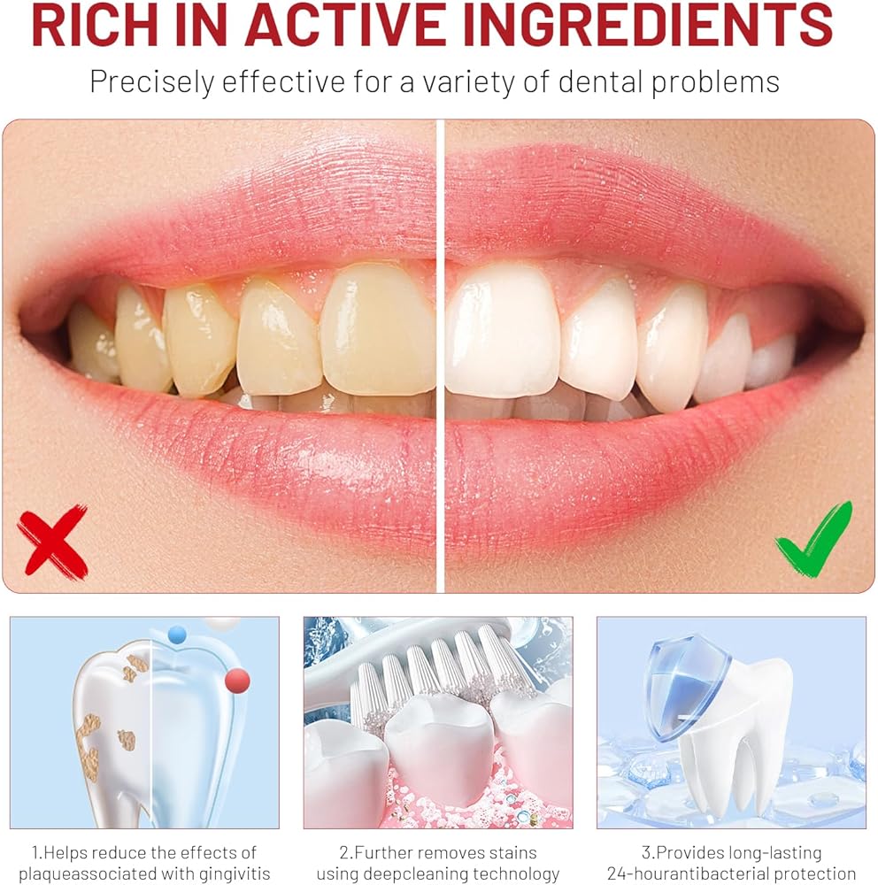 【Easy to Use】Use the best whitening toothpaste twice a day for 3 minutes each time. You can easily feel the visible improvement in the whiteness of your teeth, and continue to use it for better results. It's that simple
