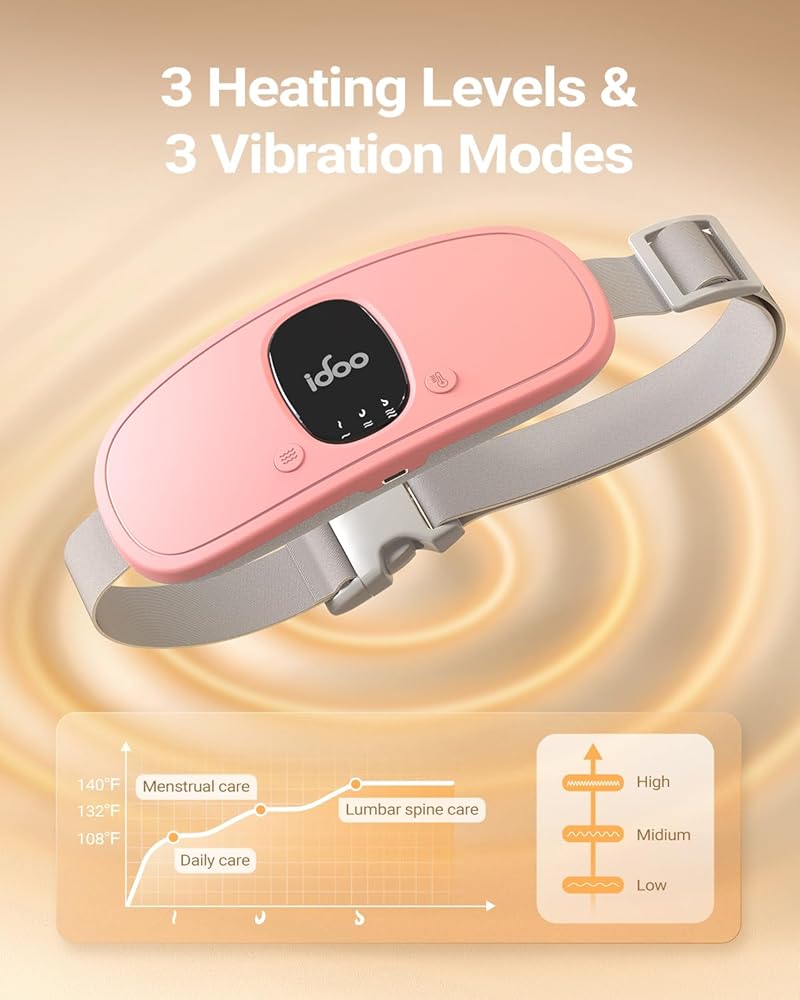 • التدليك والحرارة القابلان للتعديل: تجمع وسادة التسخين لتخفيف التشنجات iDOO بين وضعين للتسخين ووضعين للاهتزاز لتلبية الاحتياجات المتنوعة، ودرجتي حرارة قابلتين للتبديل (131 درجة فهرنهايت و140 درجة فهرنهايت)، وهي منقذة للحياة لآلام الظهر والبطن وتشنجات الدورة الشهرية.