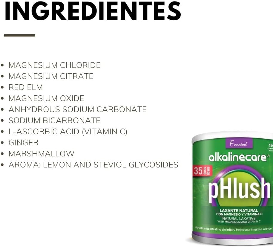 Experience a natural and effective way to support your digestive health with pHlush Detox Natural Laxative. Specially formulated to strengthen and balance the intestinal system, this detox cleanser is designed to improve the vitality and functioning of your digestive organs. pHlush Detox is your go-to solution for cleansing, detoxifying, and alkalizing your digestive system while maintaining the balance of your intestinal flora. Key Features: Natural Detox & Cleanser: pHlush Detox acts as a natural laxative, helping to detoxify and cleanse the organs of your digestive system, reducing metabolic acids and improving overall vitality. Alkalizes & Balances pH: This unique formula helps to alkalize your digestive system, purifying and balancing the pH in a gentle, non-aggressive way, ensuring the care and preservation of your intestinal flora. Vitamins & Minerals Enriched: pHlush Detox is a powerful combination of natural ingredients, vitamins, and minerals that work together to support your digestive health, promoting regular intestinal transit. Daily & Occasional Use: With an improved formula, pHlush Detox can be taken daily to facilitate intestinal transit or occasionally (5-7 days) for a deeper cleanse of the digestive system. Convenient & Easy to Use: The optimized format ensures that you can take pHlush Detox comfortably, making it a hassle-free addition to your daily routine or detox plan. Support Your Digestive Health Naturally: Whether you need a daily boost to your intestinal transit or a periodic cleanse, pHlush Detox Natural Laxative is the ideal solution for maintaining a healthy and balanced digestive system. Trust in the power of natural ingredients to cleanse and revitalize your body gently and effectively. Benefits of pHlush Natural Detox Laxative for your body: Promotes the regulation of intestinal transit. It contributes to the reduction of the amount of toxins in the body. Promotes the purification of the intestinal system and its proper functioning. Helps improve the assimilation of nutrients. Detoxifies, cleanses and alkalizes the intestinal tract. Helps reduce excess acids in digestion. Promotes the excessive removal of mucous plaque. Respect and take care of the intestinal flora. It contributes to the hydration of the fecal bolus. Promotes the natural pH balance of the colon.