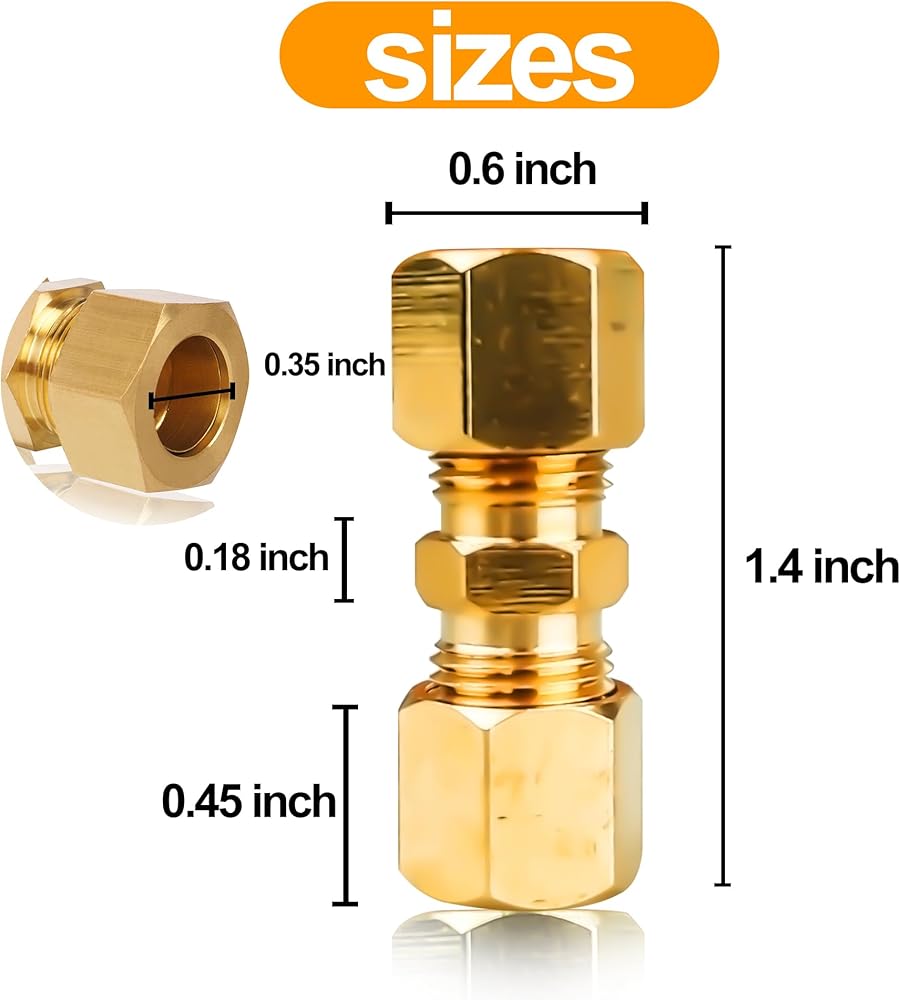 【Compatibility】 Fit 5/16" Tube OD x 5/16" Tube OD.This high-quality brass union works seamlessly with copper, brass, aluminum, or plastic tubing, suitable for most Industrial Use or Trucks Trailers.