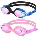 [NO LEAK SOFT SILICONE] The swimming goggles are made of safe and odourless premium soft silicone, ergonomically designed to ensure a close fit for different face shapes, preventing annoying leaks and thus reducing pressure around the eyes. In addition, the flexible silicone frames provide great comfort and will never hurt your nose or leave marks on your face.