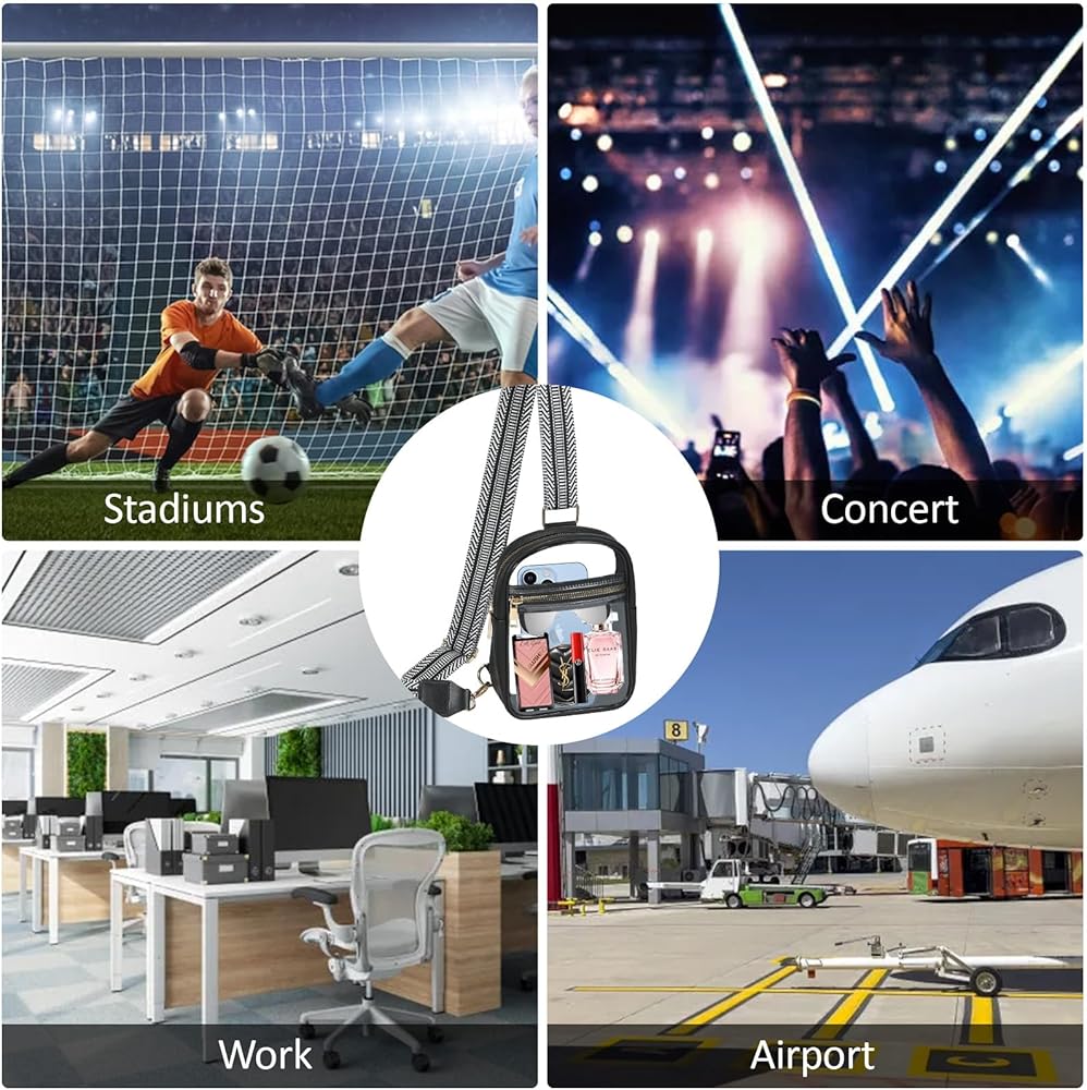 موافقة ملعب Clear Bag: تتوافق هذه الحقائب الشفافة مع أحداث الاستاد وإرشادات الأمتعة في المطارات، والتي يمكن أن تمر بسهولة عبر الأمان. يُسمح باستخدام الأكياس الشفافة في الأماكن التي تم تصميمها صراحةً، مثل الحفلات والمهرجانات والملاعب وأماكن العمل وغيرها.