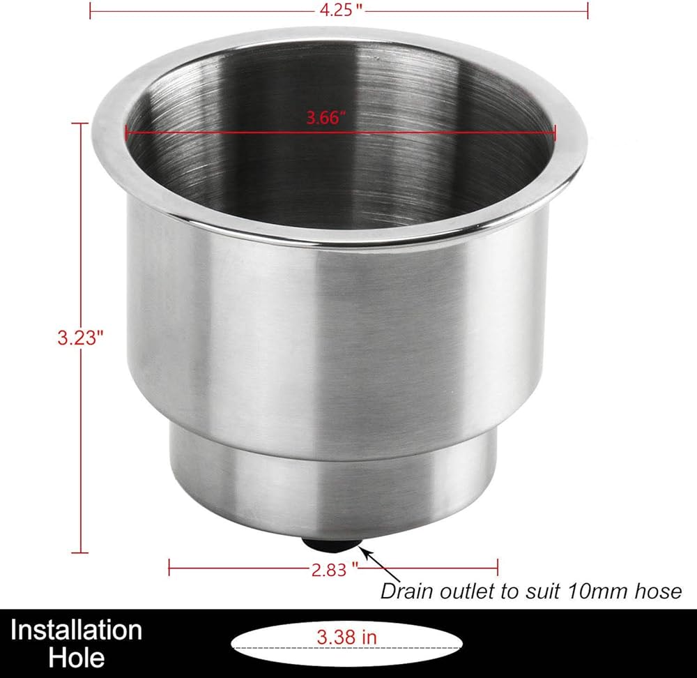 High-grade stainless steel recessed cup holder with a draining hole;Install almost anywhere,car,table,counter top, dashboard, seatback, etc.