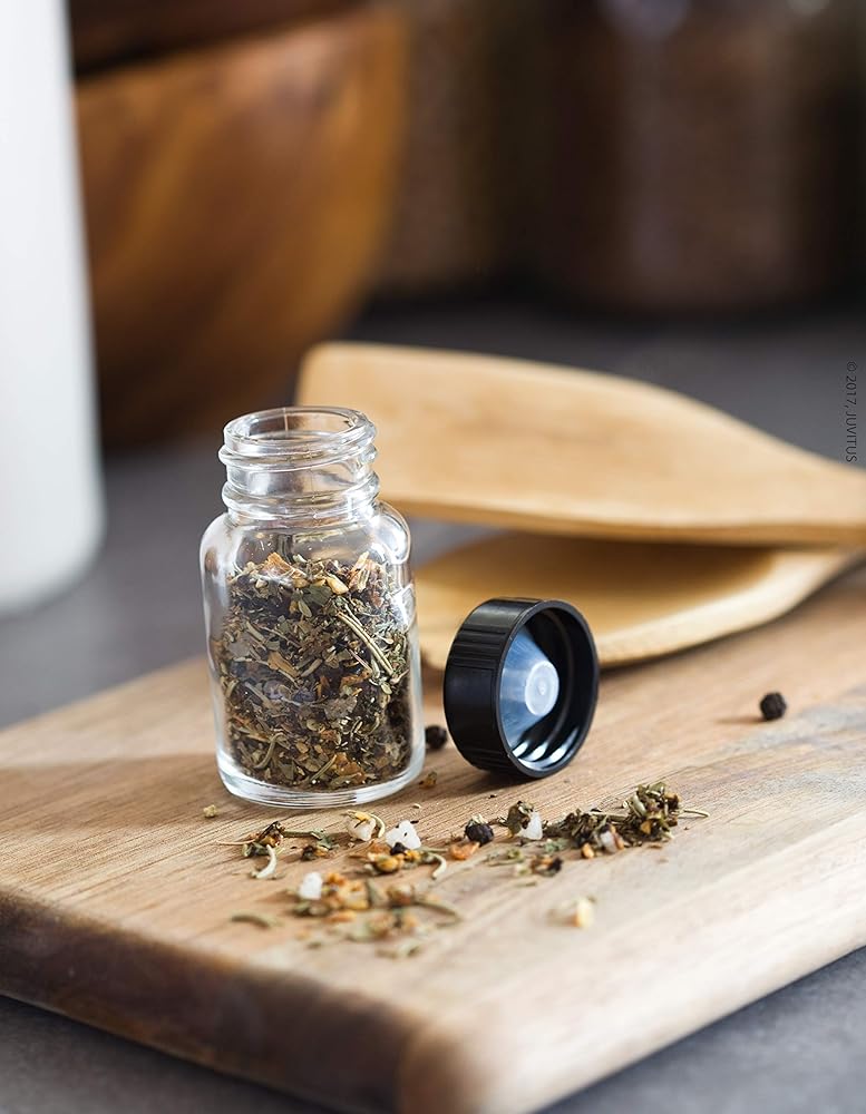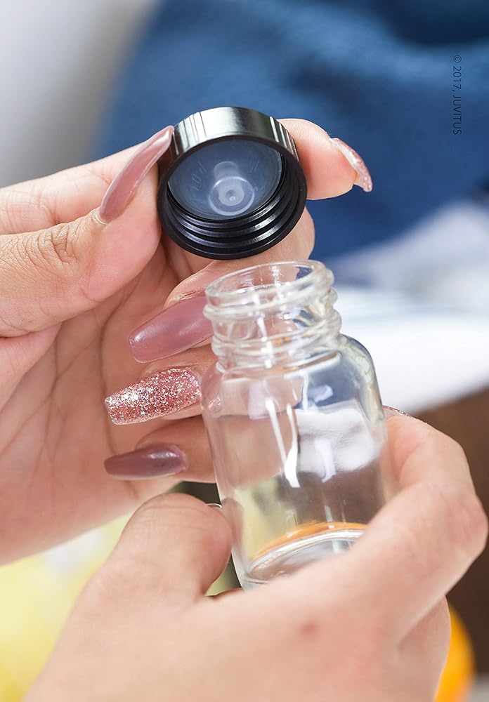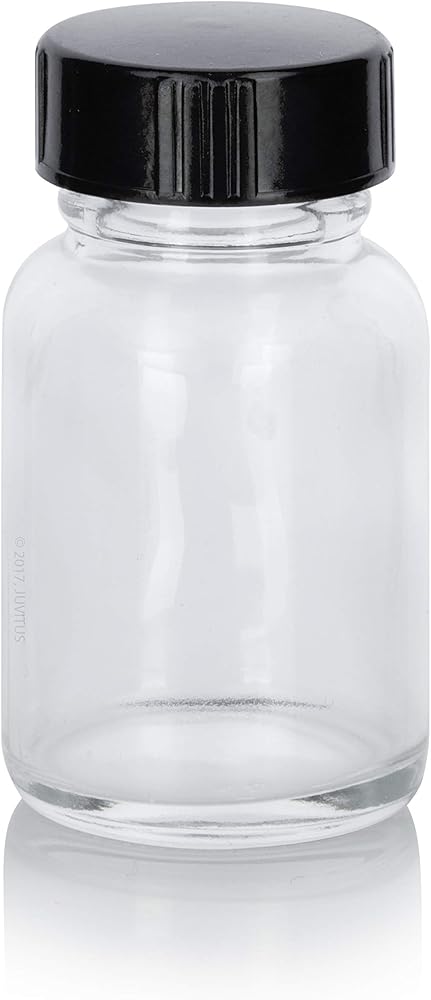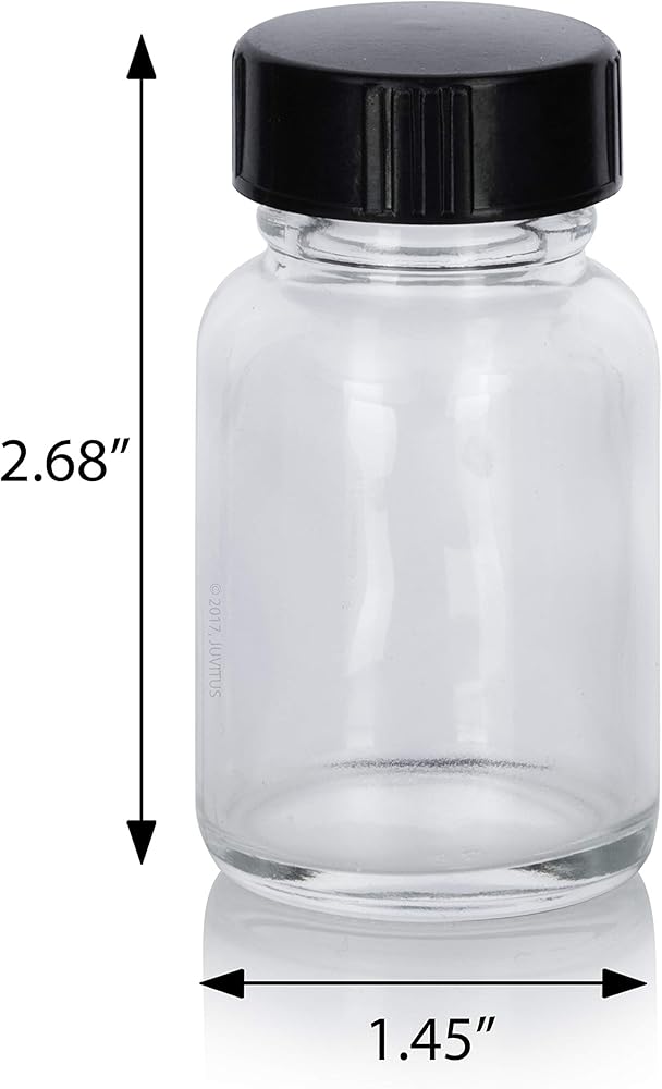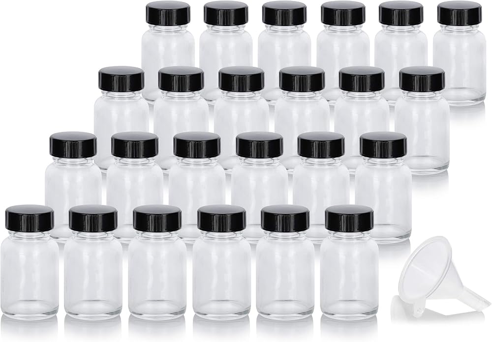 JUVITUS زجاجة ذات فم واسع من الزجاج الشفاف سعة 1 أونصة مع غطاء فينولي (24 عبوة) + قمع