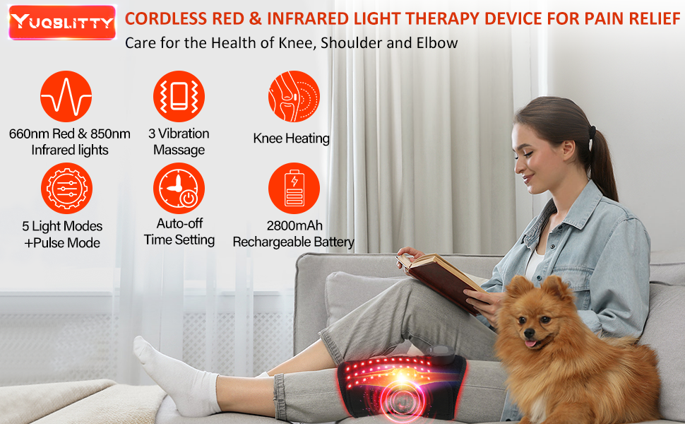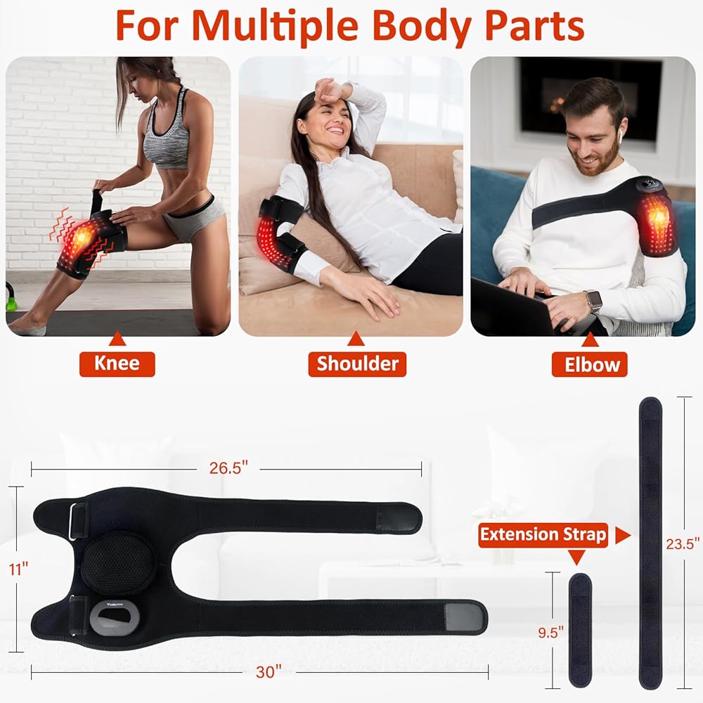 دعامة الركبة للعلاج بالضوء الأحمر لتخفيف الألم، أضواء 660 نانومتر و850 نانومتر، مدلك الركبة مع العلاج بالحرارة والضوء الأحمر، وحدة تحكم لاسلكية قابلة لإعادة الشحن بالقرب من العلاج بالأشعة تحت الحمراء لمرفق كتف الركبة
