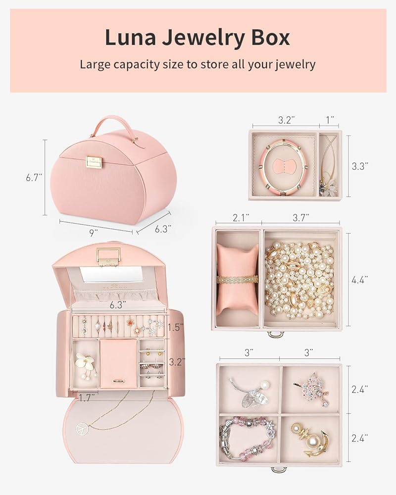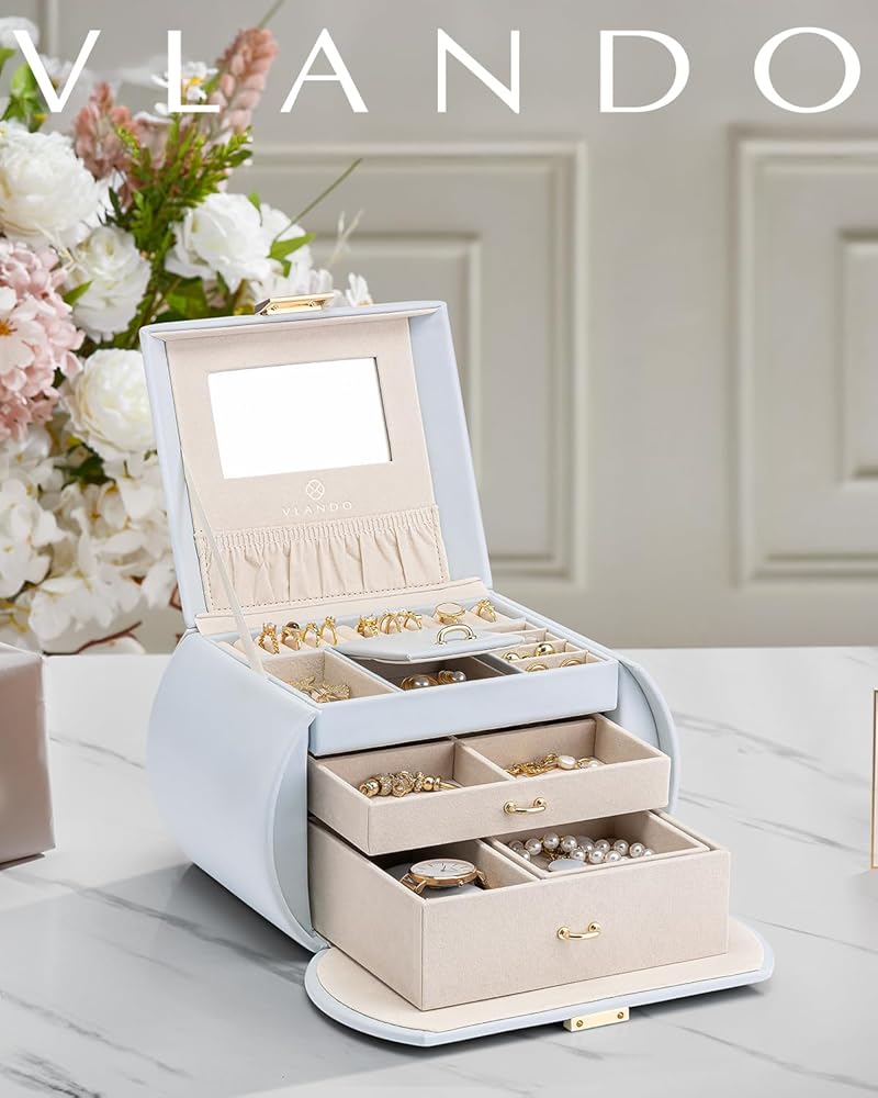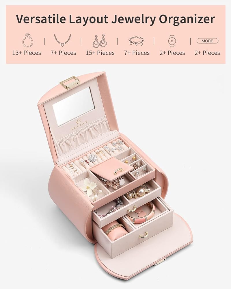 Vlando Princess Style Jewelry Box for Girls Jewelry Box Girls 12-14 3-Layer Kids Jewelry Box with Mirror Little Girls Jewelry Box 8-12 Christmas Gift for Teens Girls