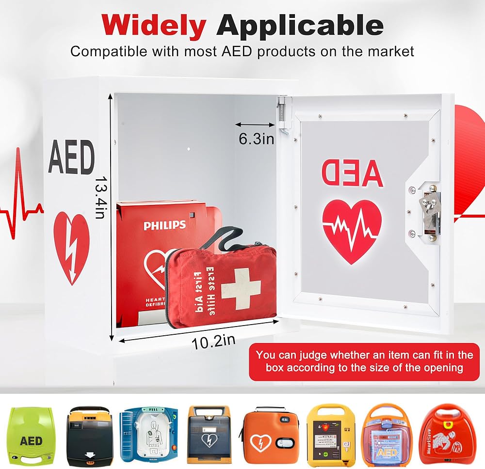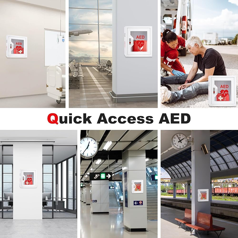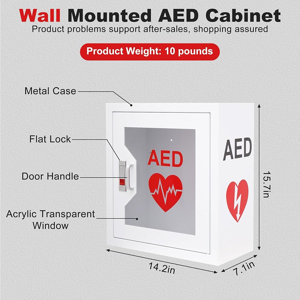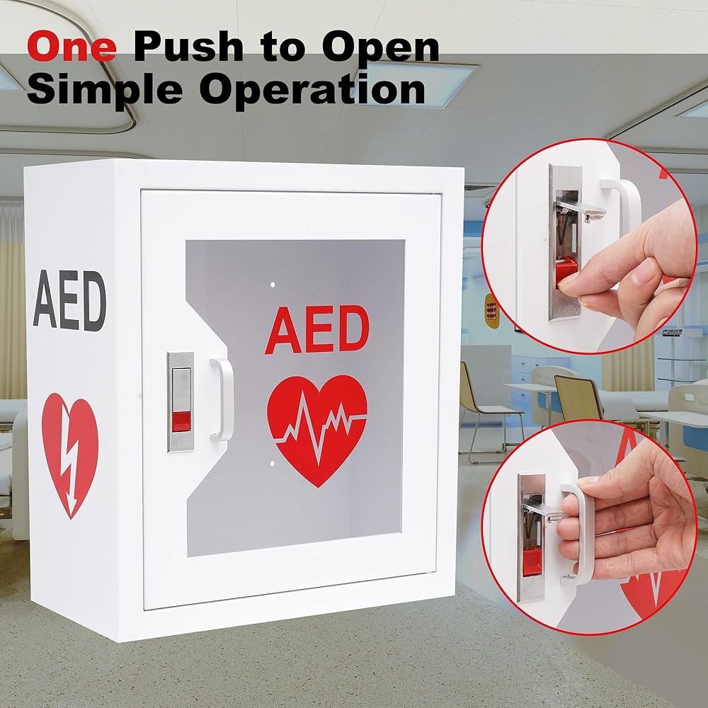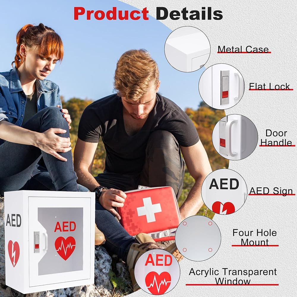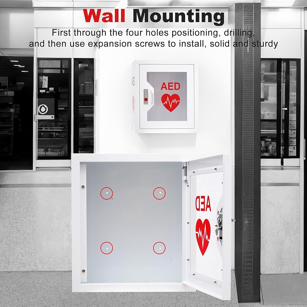 متين ومتين: حافظة AED مصنوعة من مواد معدنية عالية الجودة مقاومة للصدمات والظروف البيئية القاسية، مما يضمن الأداء المستمر وحماية المعدات المنقذة للحياة بالداخل