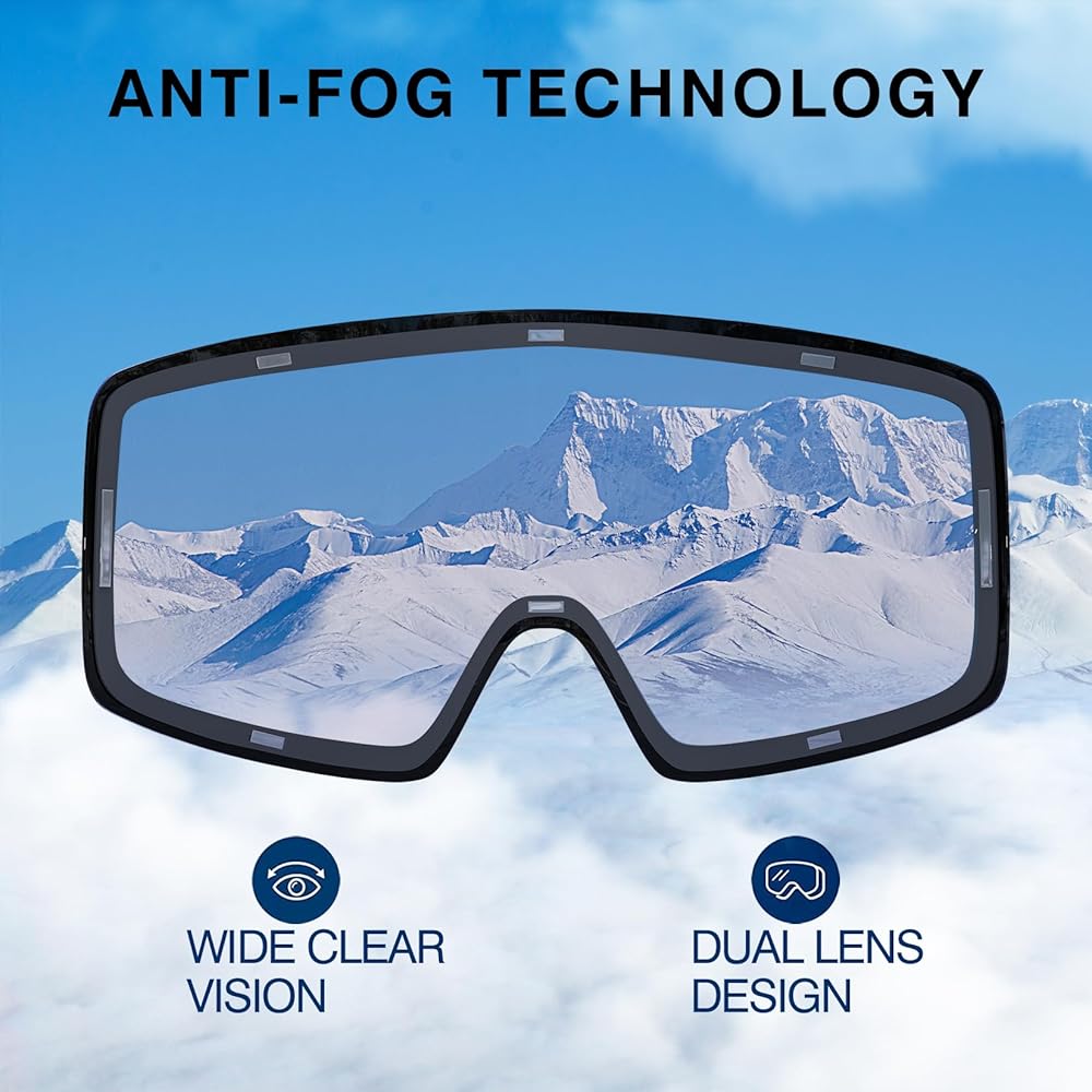 Comfortable TPU Frame and Breathable System-The ski goggles frame is made of bendable TPU material, which will not cause damage to the face even after a fall.The ski goggles use three layers of polyester sponges with strong cushioning power, while ensuring a good vent exchange and reducing fogging, they also provide a comfortable experience that fits the face without feeling oppressive.