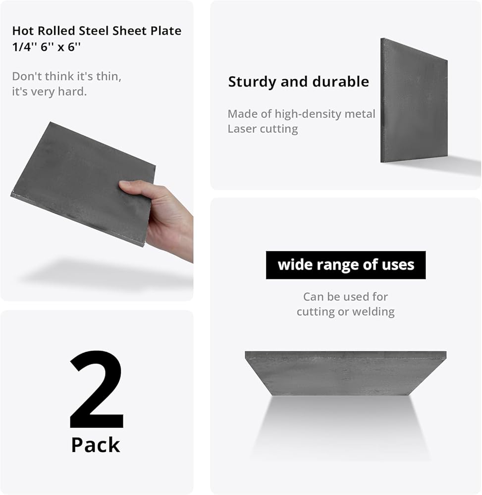 العبوة: قطعتان من ألواح الفولاذ A36، مقاس حوالي 1/4 بوصة × 6 بوصة × 6 بوصة، يمكن قصها ولحامها حسب الطلب، تلبي الاستخدام اليومي والاستبدال، مساعد جيد للهواية بنفسك