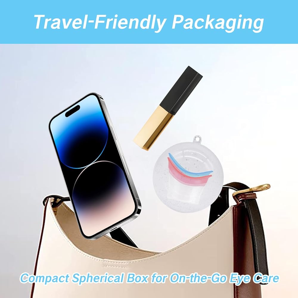 Introducing the innovative eye rinse cup, the ultimate solution for complete and efficient eye cleansing. Say goodbye to the incomplete cleaning of traditional eye drop bottles and hello to refreshed, discomfort-free eyes. Whether you're dealing with everyday eye strain or sudden discomfort, this eye wash cup kit provides the ideal , convenient solution for quick relief anytime, anywhere.Maintain the moisture and freshness of your eyes with ease. The eye wash bottle can be used with your favorite eye drops or eye wash solution to keep your eyes hydrated and reduce waste. If debris gets into your eyes, a quick rinse with saline using the eye cup will leave your eyes feeling clean and comfortable.Designed with your comfort in mind, the eye wash cup features a silicone mouthpiece that is non-slip and leak-proof. The new and improved design fits well to your eye socket, creating a secure seal that prevents spills while providing a gentle and soothing experience. Enjoy a comfortable eye wash experience every time.Using the eye cups for eye wash is incredibly simple. Just fill the cup with your preferred liquid, invert the cup, and gently press it against your eye. Blink and move your eyes to ensure a thorough cleanse. Within moments, your eyes will feel refreshed and revitalized, ready to take on the day.Traveling? No problem. The eye wash kit comes in a stylish and practical spherical outer box, designed for easy portability. Slip it into your bag or luggage, and you'll always have a reliable eye wash solution at your fingertips. The case keeps the eye rinse cup clean and dry, ensuring it's ready for use whenever you need it.