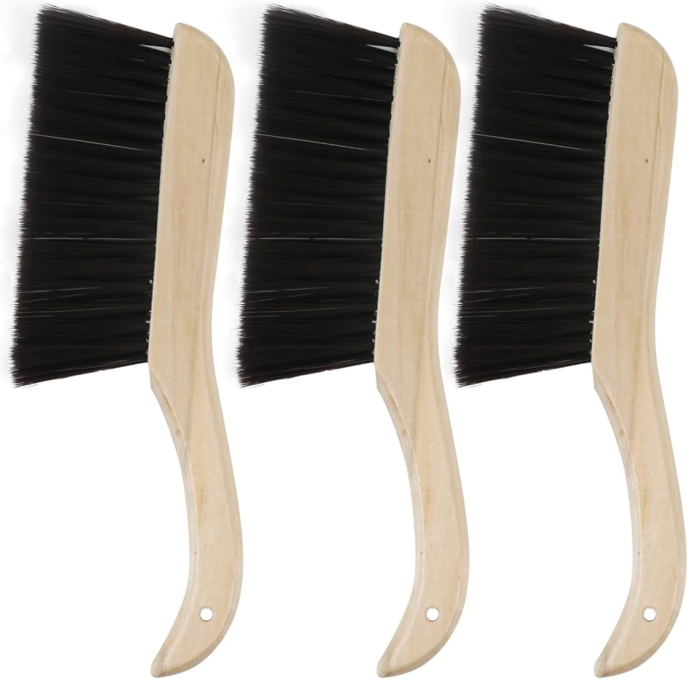 Package including: 3 pieces wooden dust-removing brushes in brown.