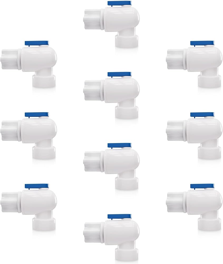 صمام كروي للخزان من نوع توصيل الضغط لأنظمة تنقية المياه ونظام التناضح العكسي خزان تخزين المياه المضغوطة (1/4 بوصة أنثى NPT × 1/4 بوصة توصيل أنبوب OD) الكمية 10 قطع