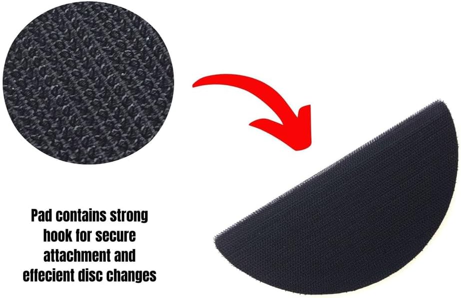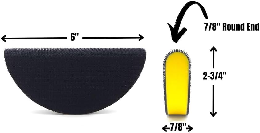 This half-moon shape is a piece of foam covered in hook and loop and designed to be completely wrapped with a 6" sanding disc. It is great for getting into tight spots where a mechanical sander just can't reach. Overall size is 6" x 2-3/4" with a 7/8" radius on the long edge.
