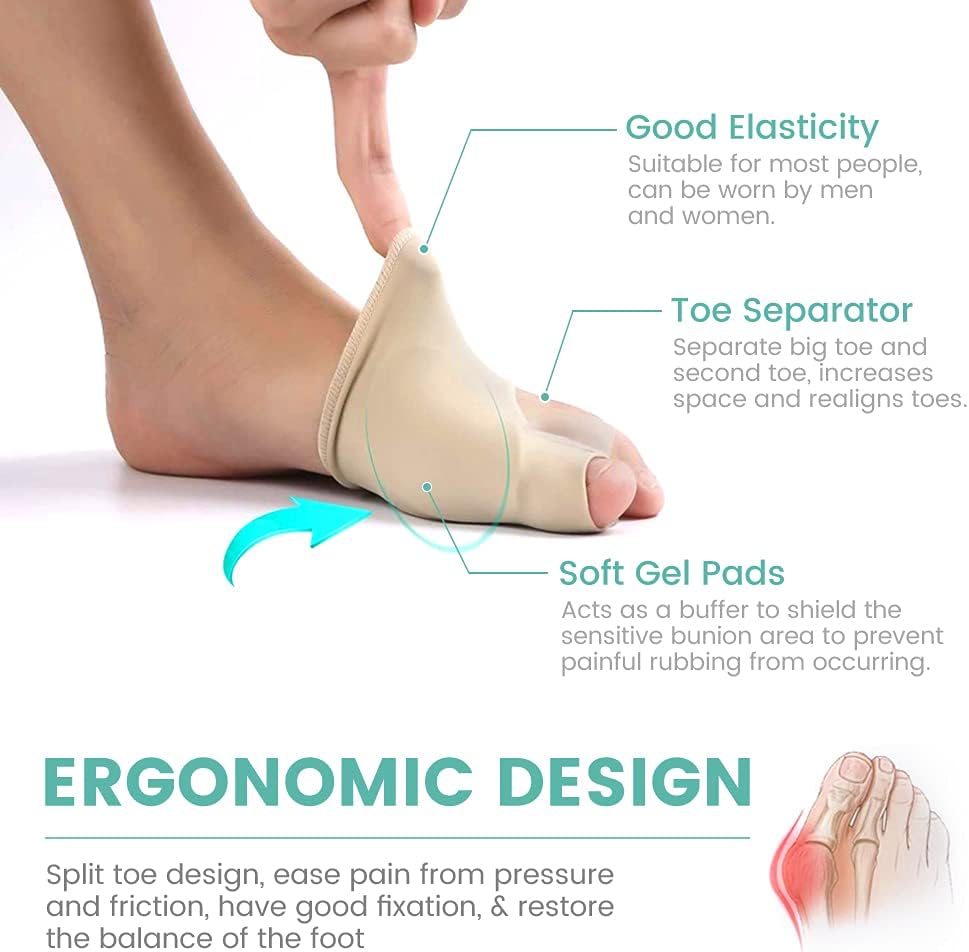 ✔ تخفيف الورم: يخفف الألم الناتج عن الورم عن طريق إعادة محاذاة المفصل إلى وضعه الطبيعي. وسادة هلامية فائقة النعومة فوق إصبع القدم الكبير تحمي المنطقة المتضررة.