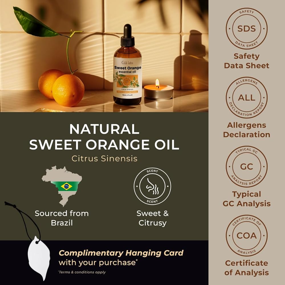 الجودة مضمونة لراحة بالك. زيت البرتقال الحلو من Gya Labs طبيعي 100% وخضع لرقابة صارمة على الجودة. استشر الطبيب إذا كان لديك أي مخاوف طبية.