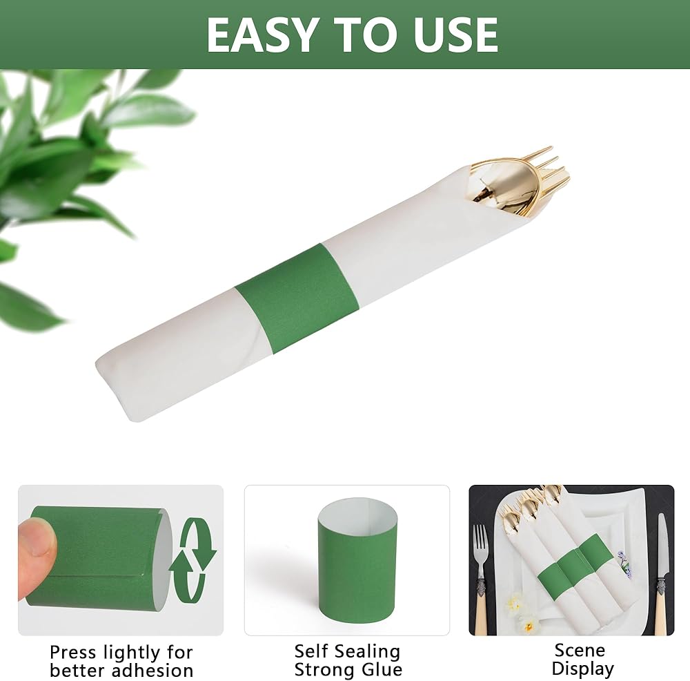 Self-Adhesive Design: These napkin bands self adhesive feature makes them easy to use and secure. Simply wrap them around your napkins and press lightly to ensure they stay in place throughout your event.
