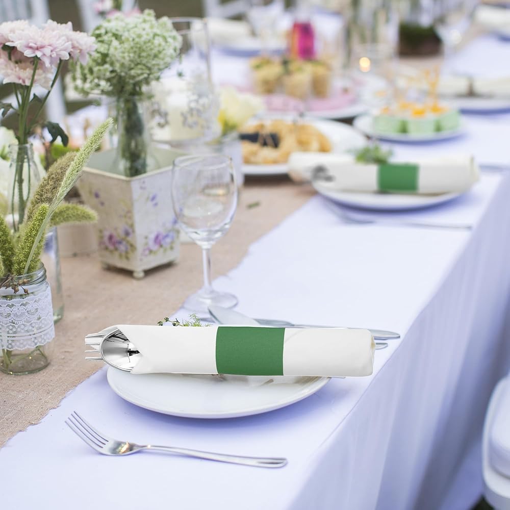 Stylish Silverware Wraps Bands: In addition to securing your napkins, these bands also serve as stylish silverware wraps. They add a decorative touch to your flatware, making it more visually appealing and adding an extra layer of sophistication to your table setting.