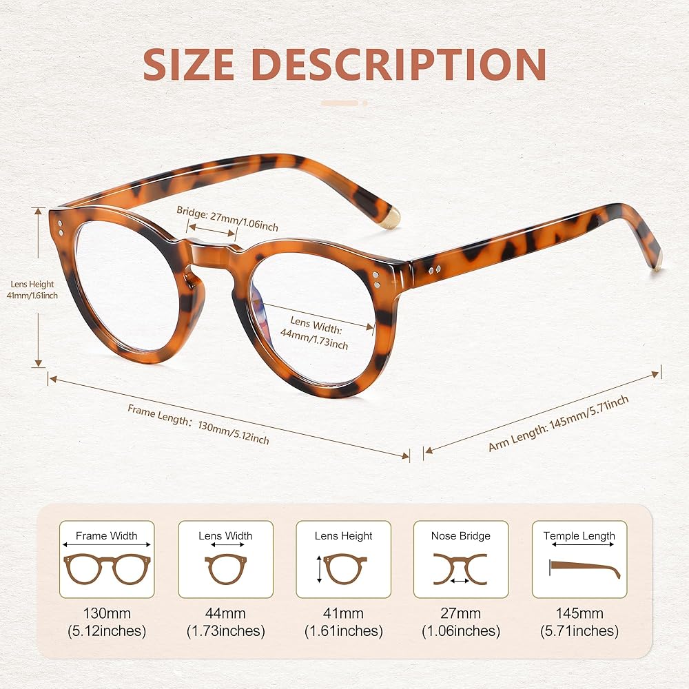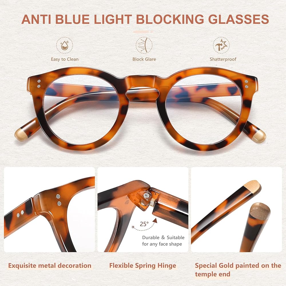 【إطار خفيف الوزن مع مفصلات زنبركية】- النظارات الدائرية خفيفة الوزن والمضادة للضوء الأزرق مصنوعة يدويًا من مادة البولي كربونات خفيفة الوزن مع جسر أنف مريح. أذرع المفصلات الزنبركية مناسبة لجميع الوجه، مما يمنحك تجربة ارتداء مريحة.