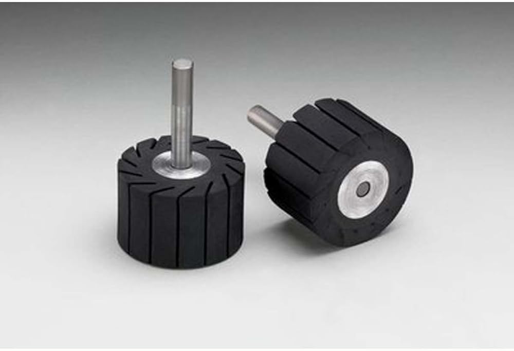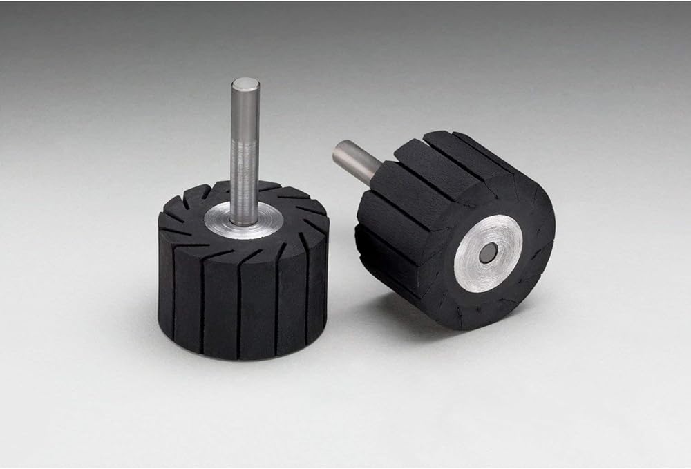 The 3M Rubber Slotted Expander Wheel utilizes centrifugal force to grip abrasive belts while grinding. Use this wheel on a 3M Inline Sander or 3M Match & Finish Tool. It comes in three diameters and two center hole diameters.