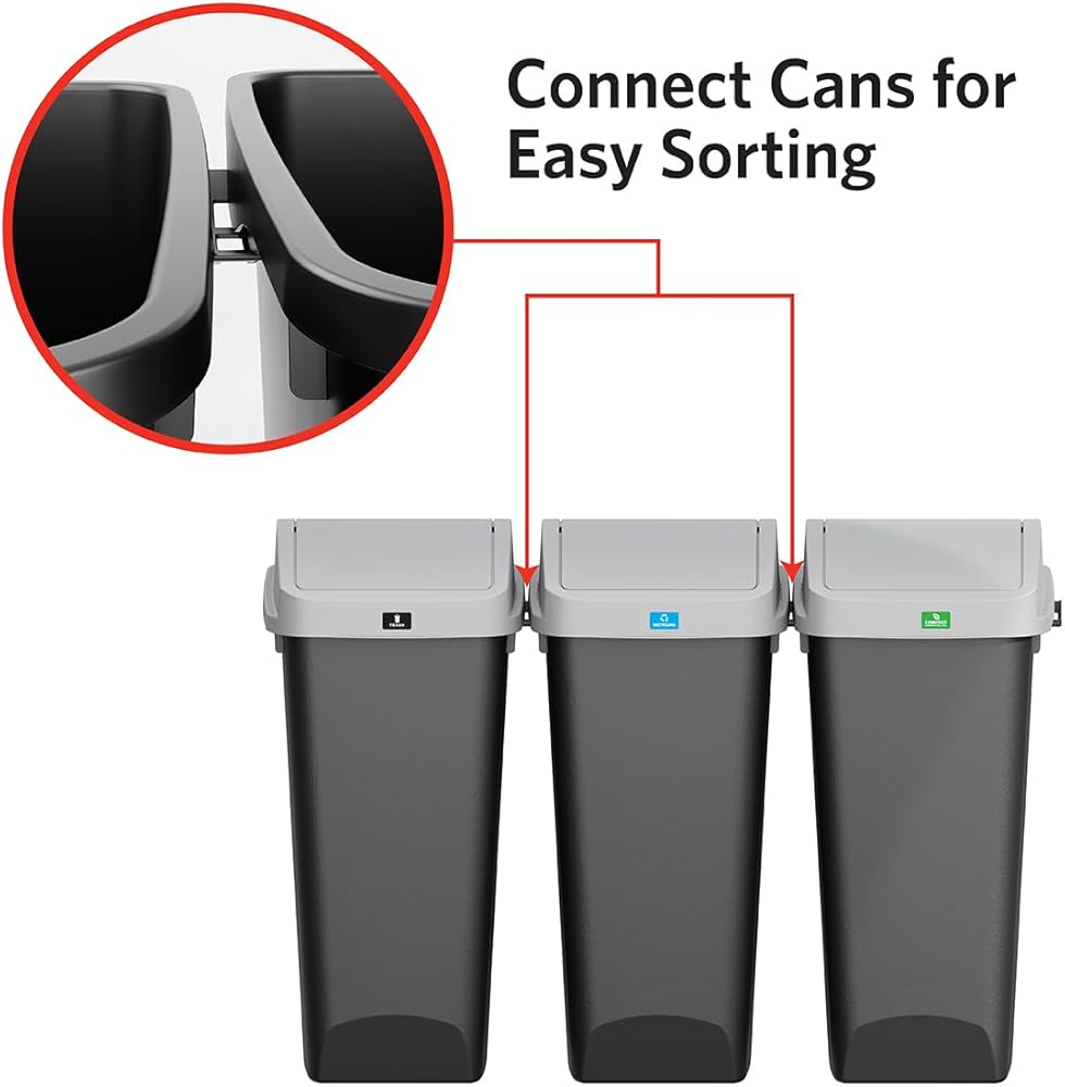 WASTE & RECYCLING STATION FOR HOMES AND OFFICES - Reduce waste by sorting your recyclables and compostables with the Glad Link & Sort. Three 12 gallon plastic trash cans link together to create a single recycling center.