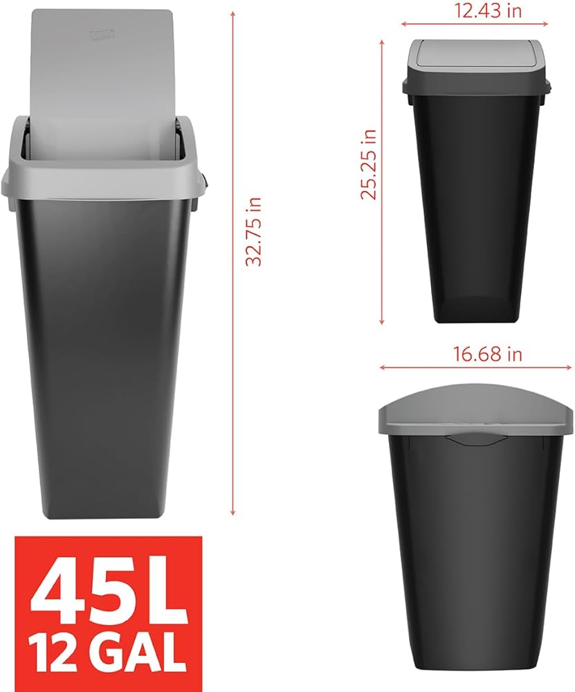 LIFT TOP AND STAY OPEN LIDDED TRASH CANS – Each durable plastic waste bin is made with a swing style top. Lift top lid to create a full opening of the can to effortlessly dispose of larger waste such as a pizza box or a gallon of milk. Push lid into vertical position to stay open for continuous waste disposal during food prep or longer chores,